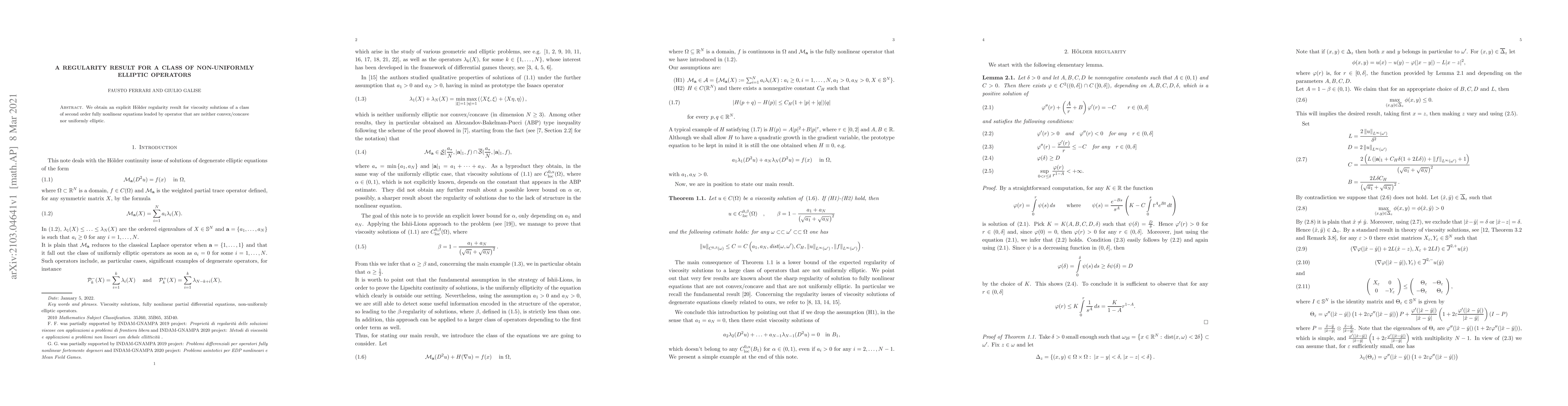Summary: This paper establishes an explicit H\"older regularity result for viscosity solutions of a class of non-uniformly elliptic, fully nonlinear second-order partial differential equations, extending the applicability of regularity results beyond uniformly elliptic operators.