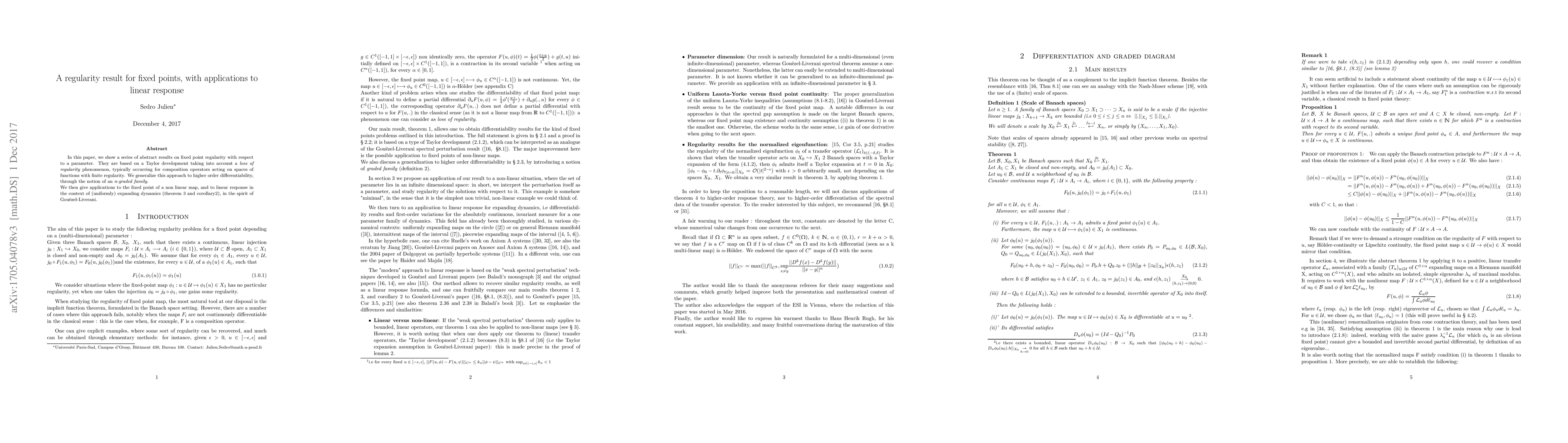 This paper establishes a regularity result for fixed points in spaces of functions with finite regularity, with applications to non-linear maps and linear response in expanding dynamics.