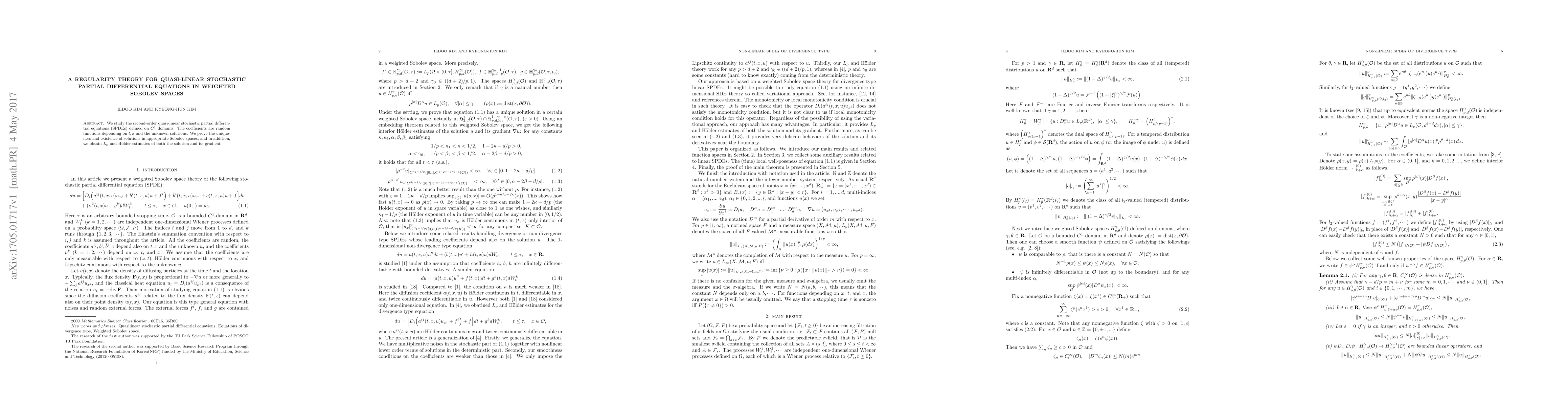 This paper establishes a regularity theory for quasi-linear stochastic partial differential equations (SPDEs) in weighted Sobolev spaces, proving the existence, uniqueness, and obtaining $L_p$ and H\"older estimates for solutions and their gradients.