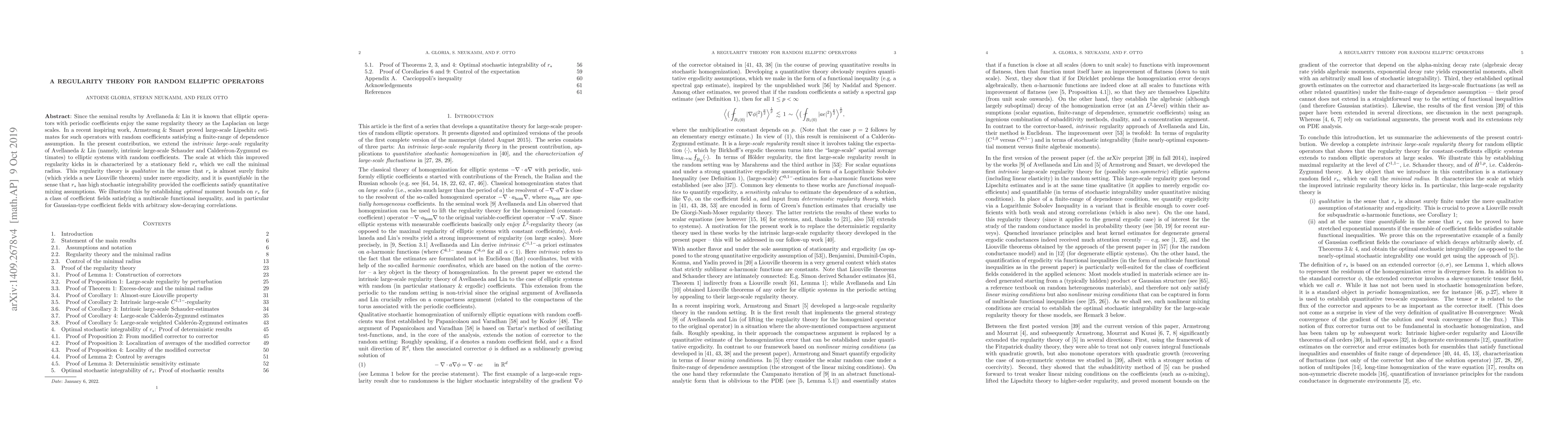 Since the seminal results by Avellaneda \& Lin it is known that elliptic operators with periodic coefficients enjoy the same regularity theory as the Laplacian on large scales. In a recent inspiring work, Armstrong \& Smart proved large-scale Lipschitz estimates for such operators with random coefficients satisfying a finite-range of dependence assumption. In the present contribution, we extend the \emph{intrinsic large-scale} regularity of Avellaneda \& Lin (namely, intrinsic large-scale Schauder and Calder\'eron-Zygmund estimates) to elliptic systems with random coefficients. The scale at which this improved regularity kicks in is characterized by a stationary field $r_*$ which we call the minimal radius. This regularity theory is \textit{qualitative} in the sense that $r_*$ is almost surely finite (which yields a new Liouville theorem) under mere ergodicity, and it is \textit{quantifiable} in the sense that $r_*$ has high stochastic integrability provided the coefficients satisfy quantitative mixing assumptions. We illustrate this by establishing \emph{optimal} moment bounds on $r_*$ for a class of coefficient fields satisfying a multiscale functional inequality, and in particular for Gaussian-type coefficient fields with arbitrary slow-decaying correlations.