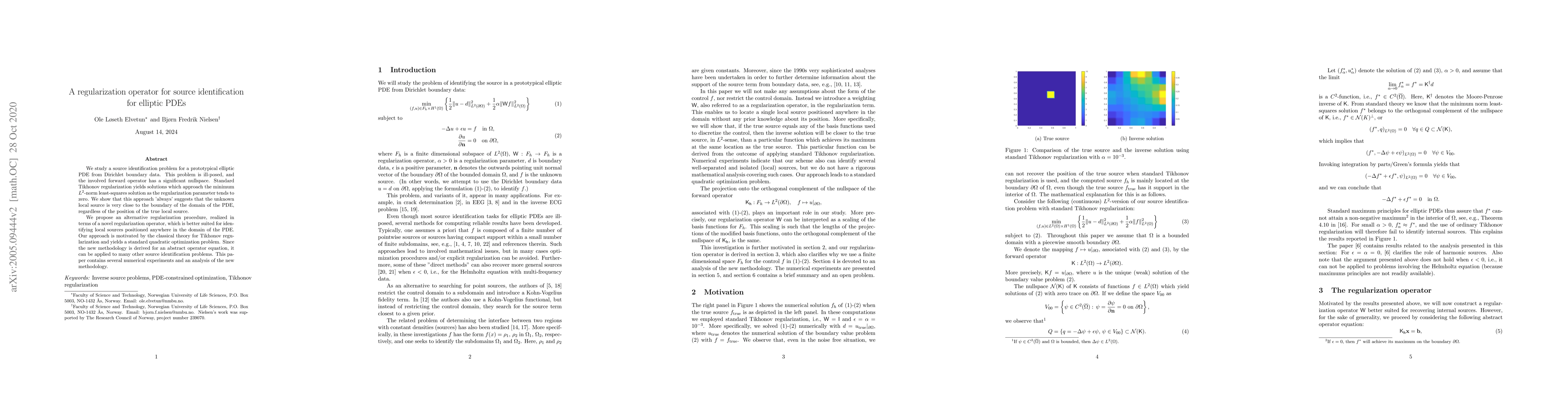 This paper proposes a novel regularization operator to address the ill-posed source identification problem for elliptic PDEs, overcoming the limitations of standard Tikhonov regularization which incorrectly localizes sources near the boundary. The new method offers a more accurate identification of sources anywhere in the domain and is applicable to various other source identification problems.