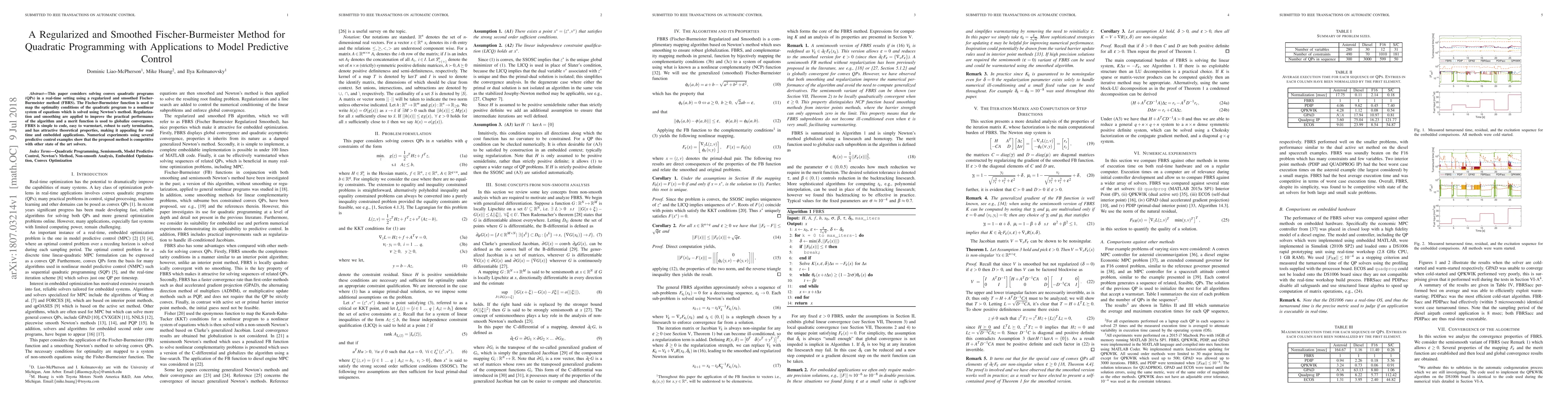This paper proposes a regularized and smoothed Fischer-Burmeister method (FBRS) for solving convex quadratic programs in real-time, demonstrating its effectiveness in model predictive control applications. The method shows competitive performance compared to other solvers in numerical experiments.