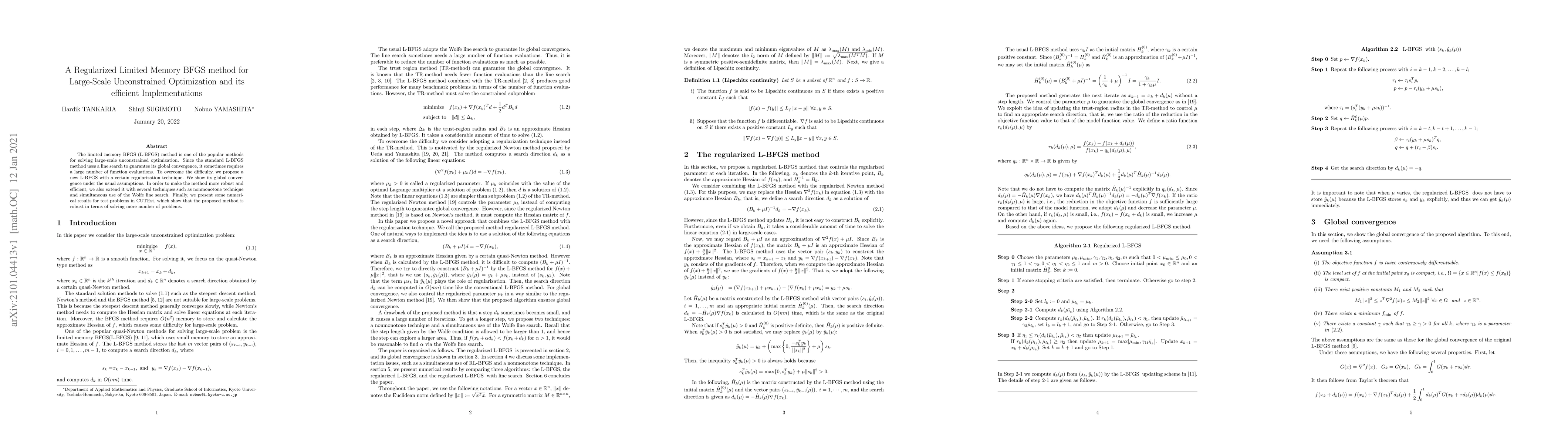 This paper proposes a regularized limited memory BFGS (L-BFGS) method for large-scale unconstrained optimization, incorporating regularization to improve global convergence and efficiency. The method is enhanced with nonmonotone techniques and Wolfe line search, demonstrating robustness and effectiveness through numerical results on CUTEst test problems.