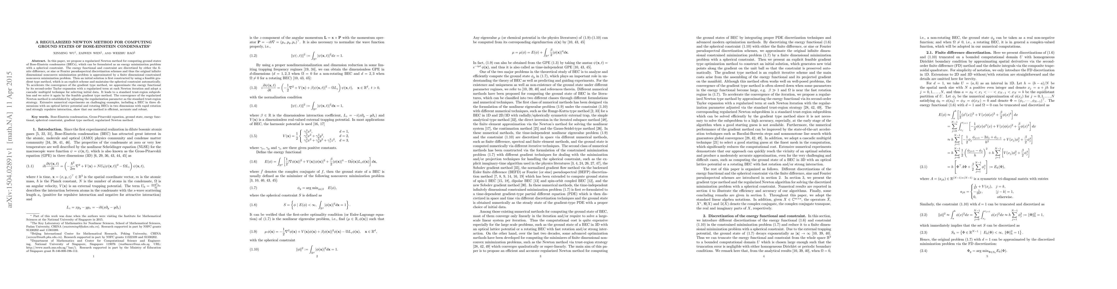This paper proposes a regularized Newton method for computing ground states of Bose-Einstein condensates, transforming the infinite-dimensional energy minimization problem into a finite-dimensional constrained optimization problem. The method combines gradient type approaches with a regularized second-order Taylor expansion and multigrid techniques, demonstrating efficiency and robustness in numerical experiments.