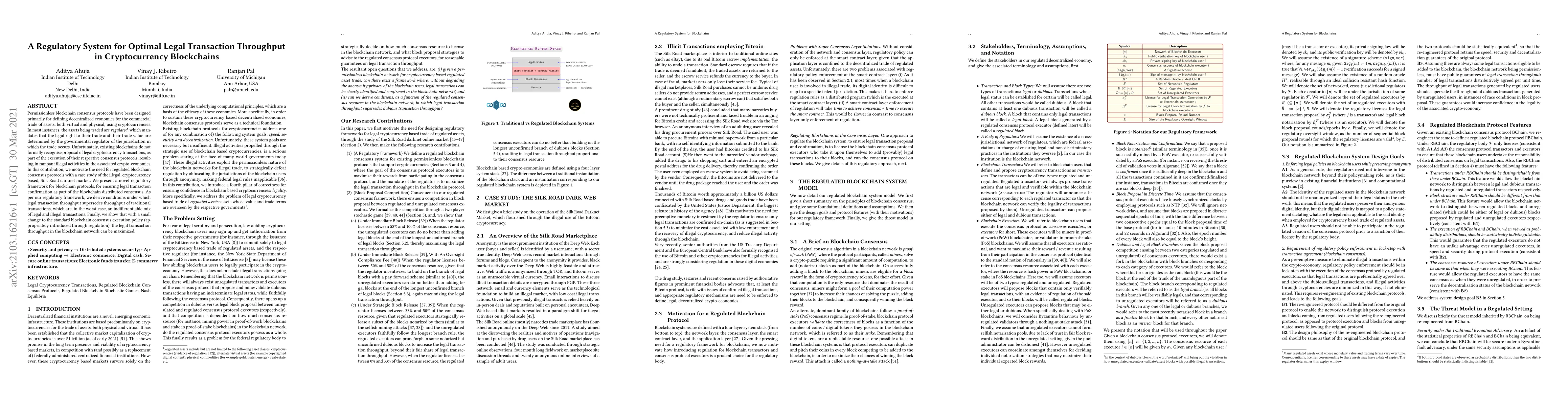 Permissionless blockchain consensus protocols have been designed primarily for defining decentralized economies for the commercial trade of assets, both virtual and physical, using cryptocurrencies. In most instances, the assets being traded are regulated, which mandates that the legal right to their trade and their trade value are determined by the governmental regulator of the jurisdiction in which the trade occurs. Unfortunately, existing blockchains do not formally recognise proposal of legal cryptocurrency transactions, as part of the execution of their respective consensus protocols, resulting in rampant illegal activities in the associated crypto-economies. In this contribution, we motivate the need for regulated blockchain consensus protocols with a case study of the illegal, cryptocurrency based, Silk Road darknet market. We present a novel regulatory framework for blockchain protocols, for ensuring legal transaction confirmation as part of the blockchain distributed consensus. As per our regulatory framework, we derive conditions under which legal transaction throughput supersedes throughput of traditional transactions, which are, in the worst case, an indifferentiable mix of legal and illegal transactions. Finally, we show that with a small change to the standard blockchain consensus execution policy (appropriately introduced through regulation), the legal transaction throughput in the blockchain network can be maximized.