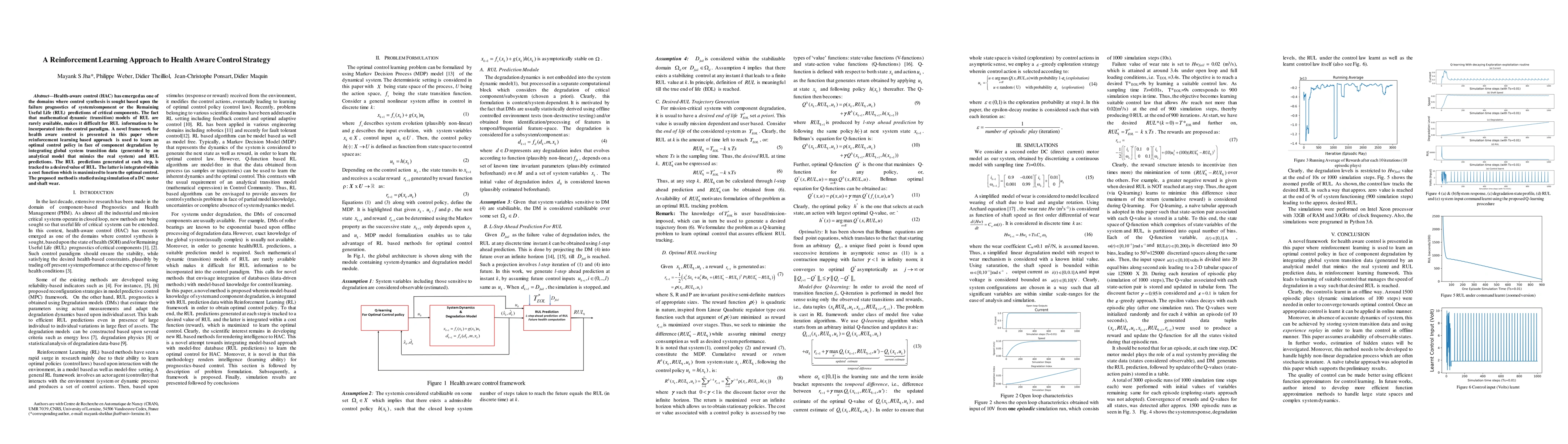 This research proposes a health-aware control framework using reinforcement learning to learn an optimal control policy that manages component degradation by integrating system transition data and RUL predictions in an RL framework.