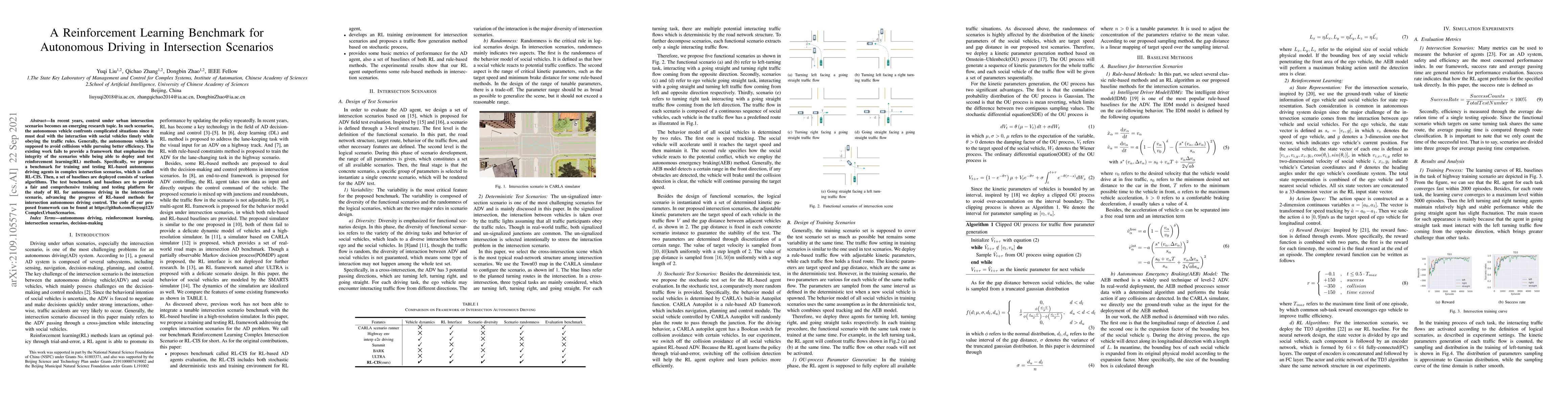 This paper introduces RL-CIS, a reinforcement learning benchmark for training and testing autonomous driving agents in complex urban intersection scenarios. The benchmark aims to provide a comprehensive platform for advancing RL-based methods in intersection control, featuring a set of baseline algorithms and detailed code available on GitHub.