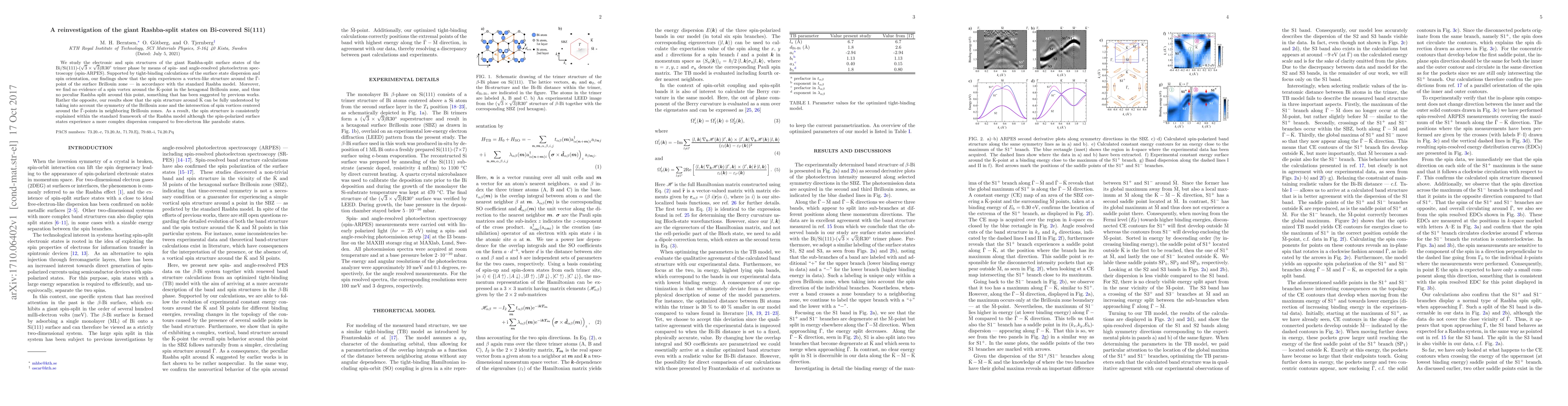 This study investigates the electronic and spin structures of giant Rashba-split surface states on Bi-covered Si(111) using spin-ARPES and tight-binding calculations. The findings reveal a vortex-like spin structure around the $\bar{\Gamma}$-point, consistent with the standard Rashba model, but no spin vortex around the $\bar{\mathrm{K}}$-point, refuting previous claims of peculiar Rashba splitting there.