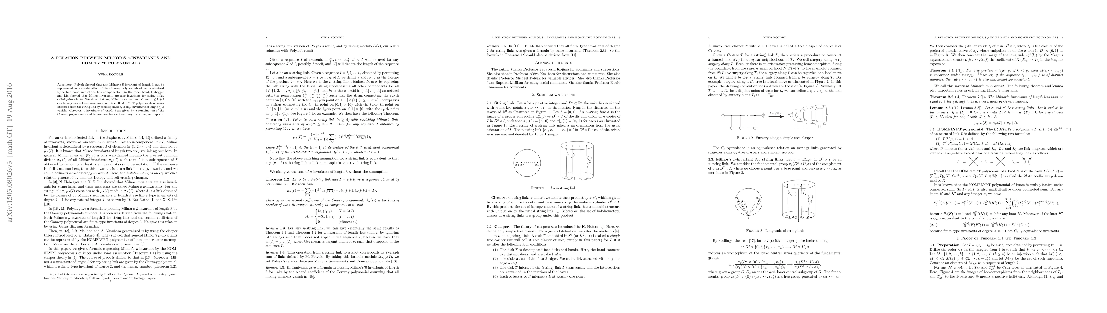 Polyak showed that any Milnor's $\overline{\mu}$-invariant of length 3 can be represented as a combination of Conway polynomials of knots obtained by certain band sum of the link components. On the other hand, Habegger and Lin showed that Milnor invariants are also invariants for string links, called $\mu$-invariants. We show that any Milnor's ${\mu}$-invariant of length $\leq k+2$ can be represented as a combination of the HOMFLYPT polynomials of knots obtained from the string link by some operation, if all ${\mu}$-invariants of length $\leq k$ vanish. Moreover, ${\mu}$-invariants of length $3$ are given by a combination of the Conway polynomials and linking numbers without any vanishing assumption.