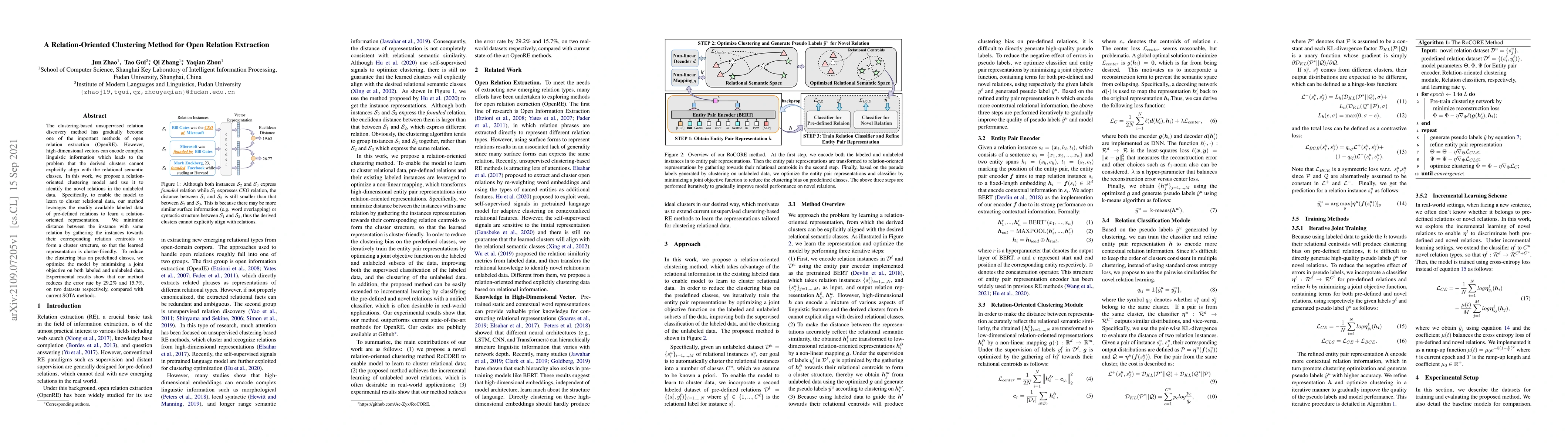 This paper proposes a relation-oriented clustering method for open relation extraction, leveraging labeled data to learn a representation that aligns clusters with relational semantic classes. The method optimizes both labeled and unlabeled data to reduce clustering bias, achieving a 29.2% and 15.7% reduction in error rates on two datasets.