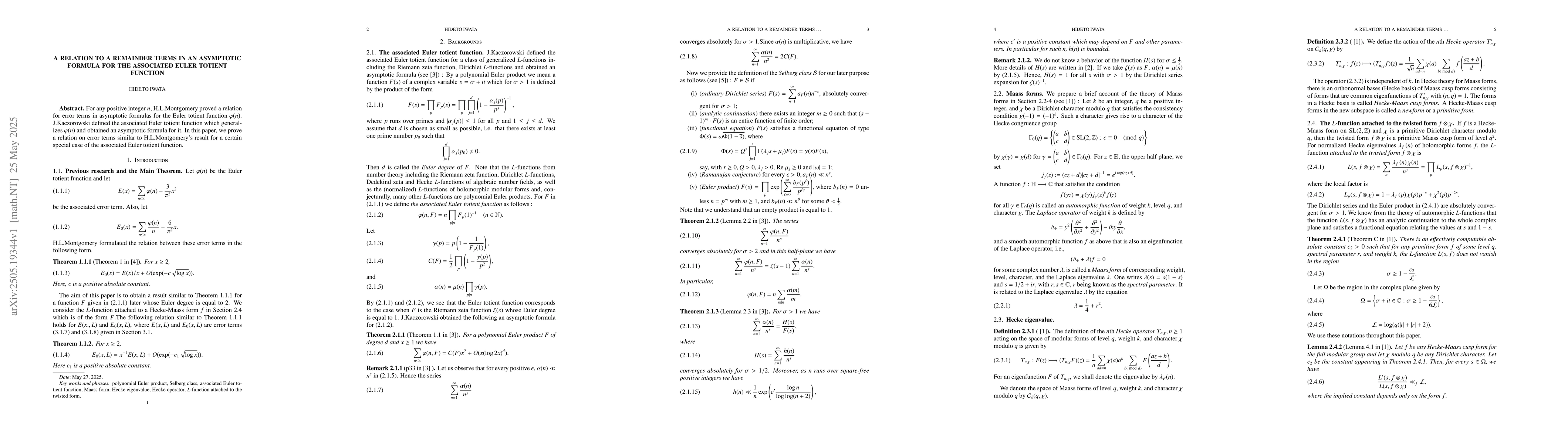 The research builds upon H.L. Montgomery's work on error terms in asymptotic formulas for the Euler totient function and J. Kaczorowski's definition and asymptotic formula for the associated Euler totient function, focusing on a specific case.