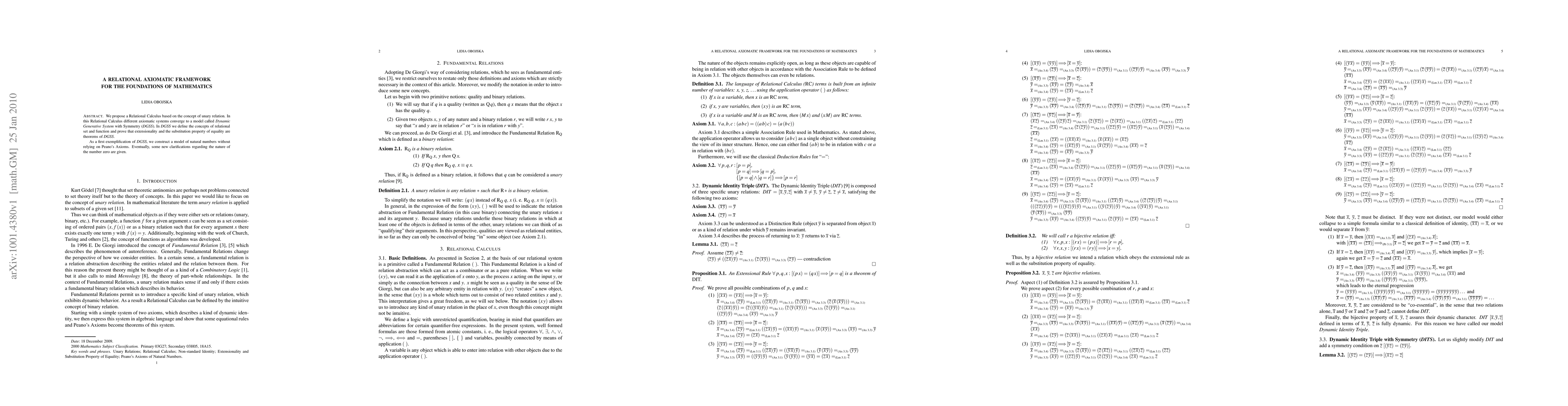 We propose a Relational Calculus based on the concept of unary relation. In this Relational Calculus different axiomatic systems converge to a model called Dynamic Generative System with Symmetry (DGSS). In DGSS we define the concepts of relational set and function and prove that extensionality and the substitution property of equality are theorems of DGSS. As a first exemplification of DGSS, we construct a model of natural numbers without relying on Peano's Axioms. Eventually, some new clarifications regarding the nature of the number zero are given.
