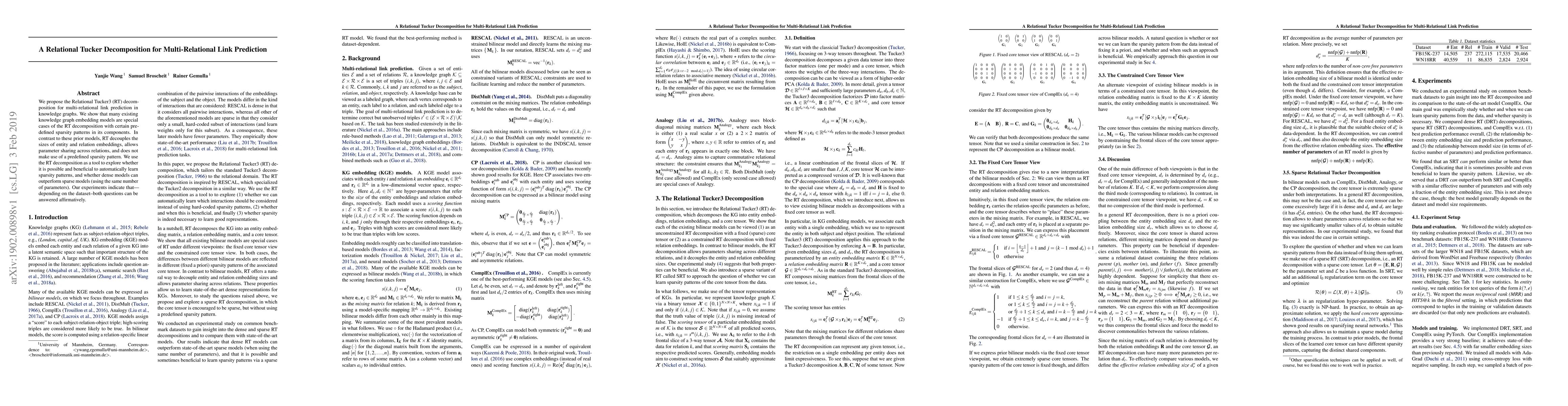 The paper presents the Relational Tucker3 (RT) decomposition, a novel approach for multi-relational link prediction that decouples entity and relation embeddings, allows parameter sharing across relations, and does not rely on predefined sparsity patterns.