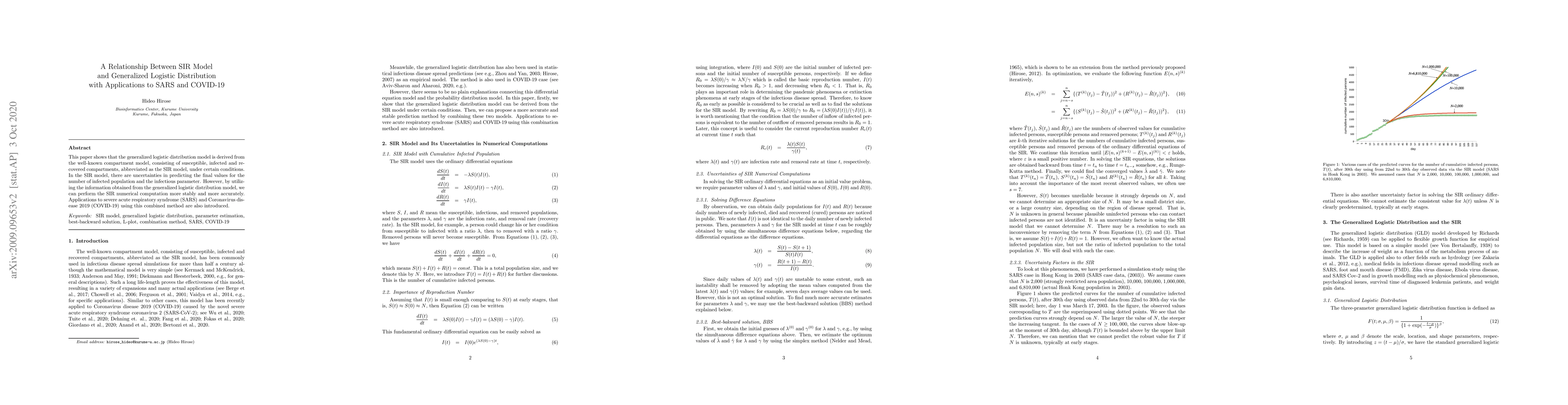 This paper shows that the generalized logistic distribution model is derived from the well-known compartment model, consisting of susceptible, infected and recovered compartments, abbreviated as the SIR model, under certain conditions. In the SIR model, there are uncertainties in predicting the final values for the number of infected population and the infectious parameter. However, by utilizing the information obtained from the generalized logistic distribution model, we can perform the SIR numerical computation more stably and more accurately. Applications to severe acute respiratory syndrome (SARS) and Coronavirus disease 2019 (COVID-19) using this combined method are also introduced.