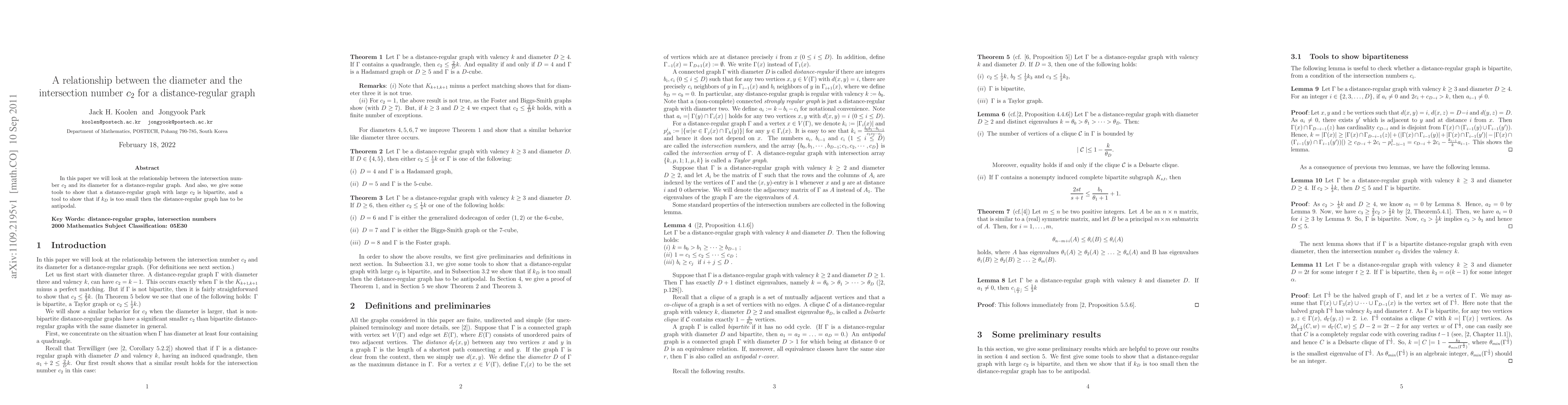 Summary: This paper investigates the correlation between the intersection number c2 and the diameter of distance-regular graphs, providing tools to demonstrate that such graphs with large c2 are bipartite and that small kD values necessitate antipodality.