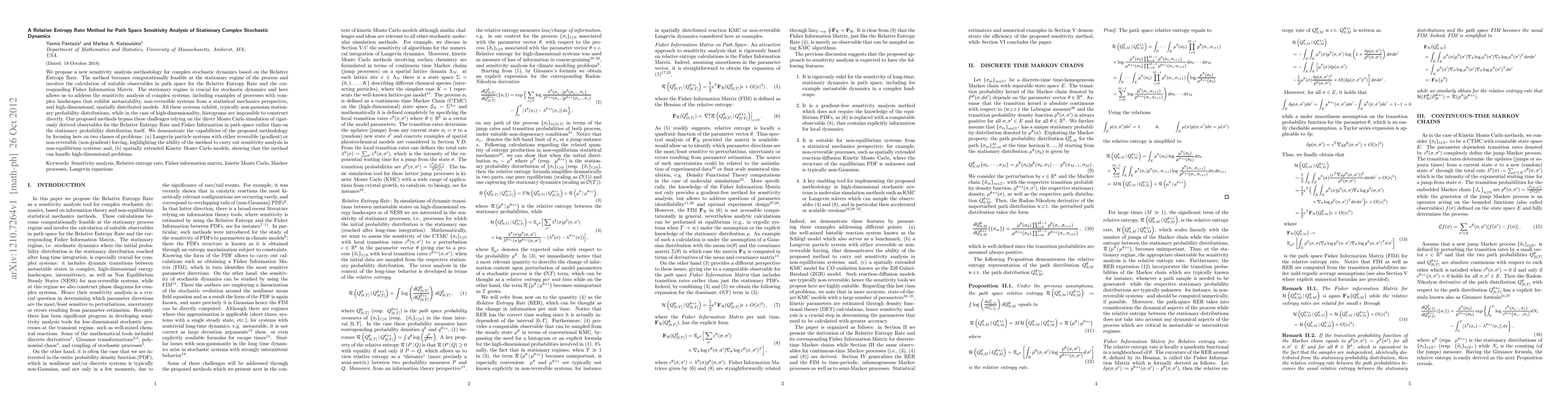 This paper introduces a novel sensitivity analysis method for complex stochastic dynamics using Relative Entropy Rate, enabling computational feasibility in the stationary regime. The method calculates observables in path space, bypassing challenges with non-Gaussian distributions and high-dimensionality through direct Monte Carlo simulations.