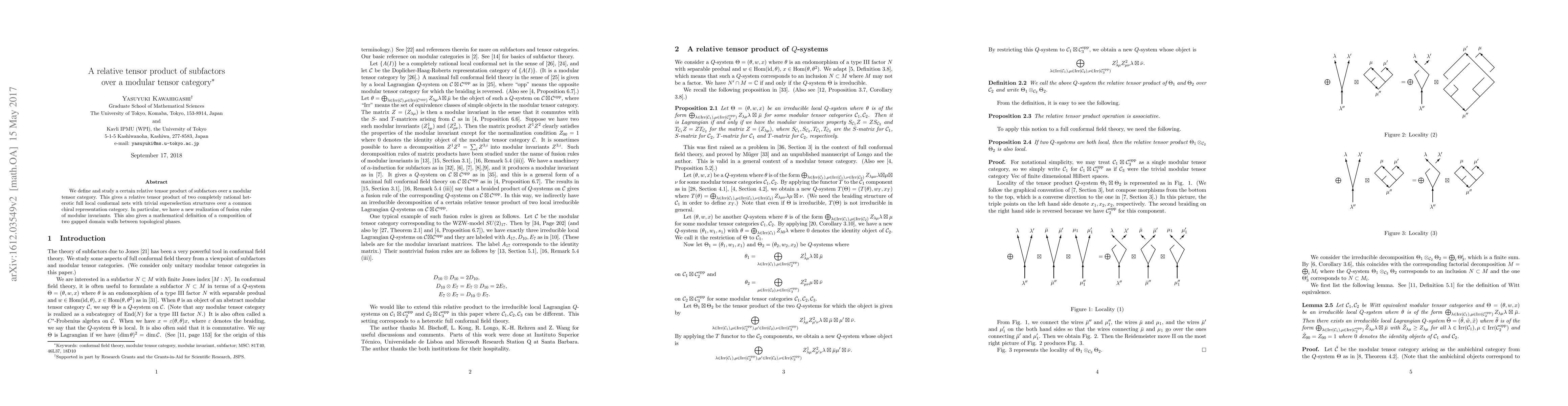 This paper introduces a new relative tensor product of subfactors within modular tensor categories, providing a framework for understanding the fusion rules of modular invariants and the composition of gapped domain walls between topological phases.