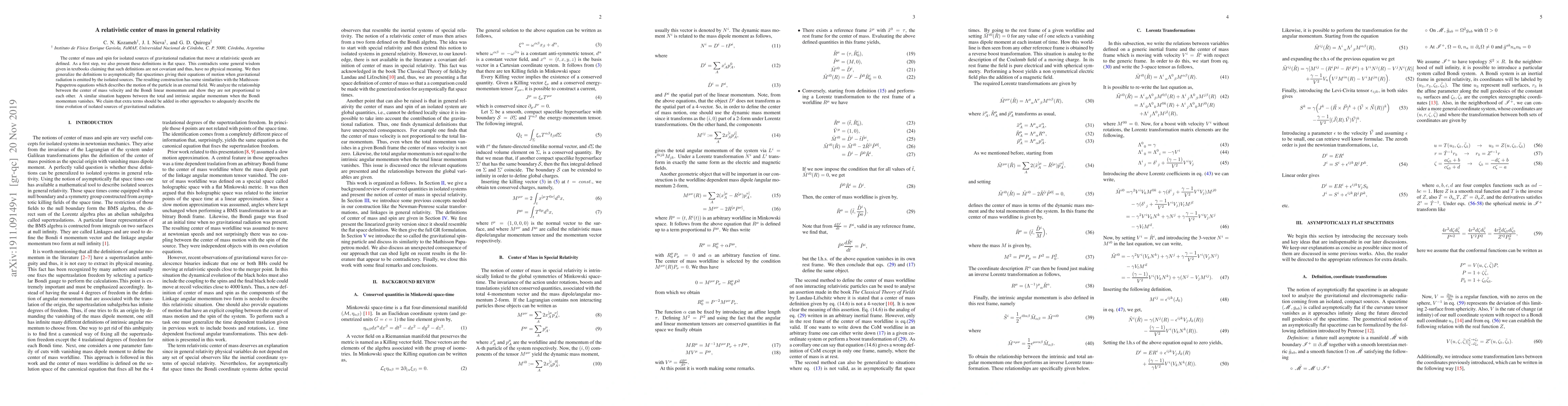 This work provides a novel, dynamical definition of center of mass and spin for isolated systems emitting gravitational radiation, which could be crucial for understanding coalescing compact objects at relativistic velocities.
