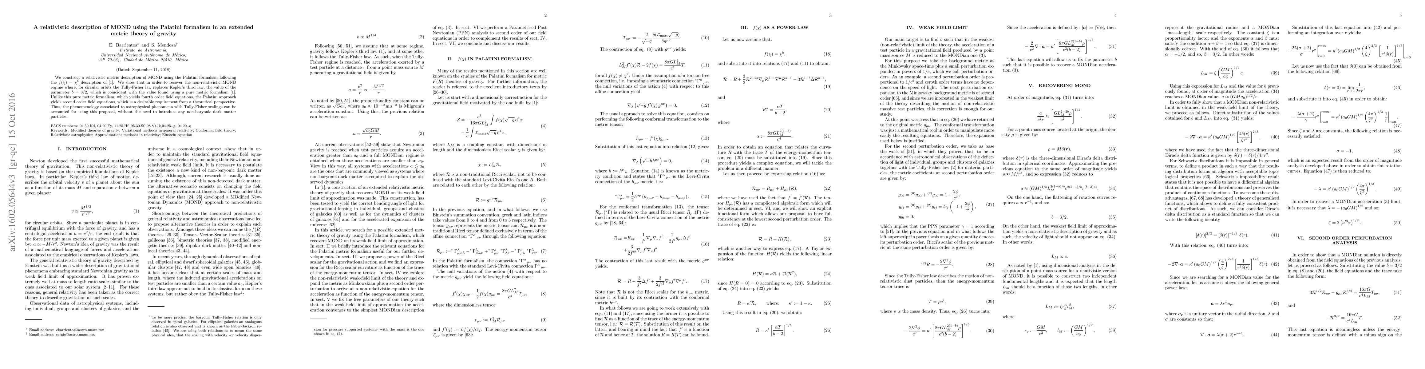 Researchers developed a relativistic description of Modified Newtonian Dynamics (MOND) using the Palatini formalism, finding that b = 3/2 is key to achieving second-order field equations without dark matter.