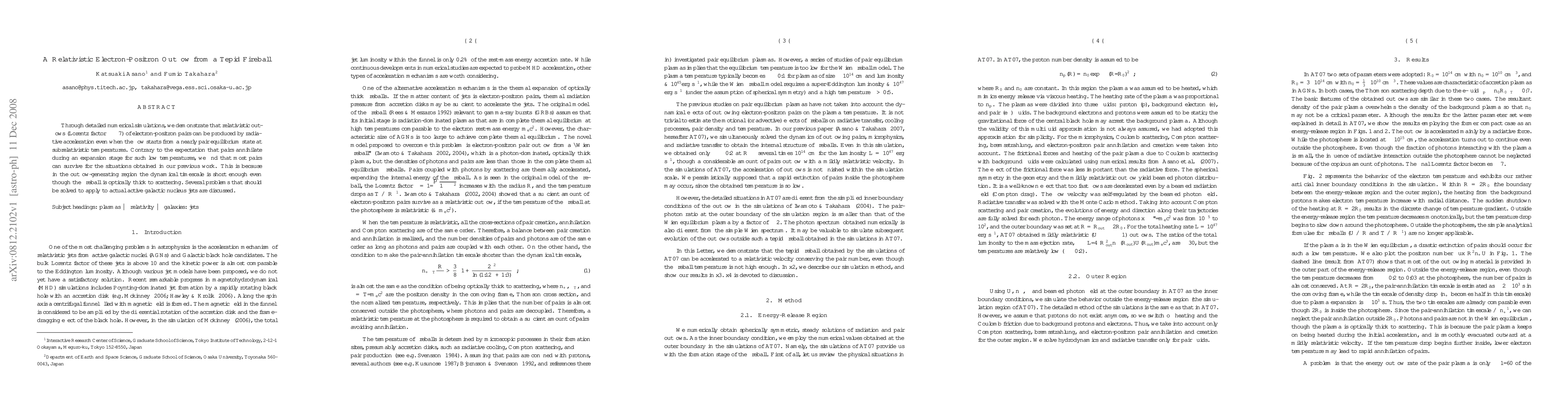 This study uses numerical simulations to show that relativistic electron-positron outflows (Lorentz factor ~7) can form from nearly pair equilibrium states at subrelativistic temperatures through radiative acceleration. Contrary to expectations, most pairs survive due to short dynamical timescales in the optically thick outflow-generating region.