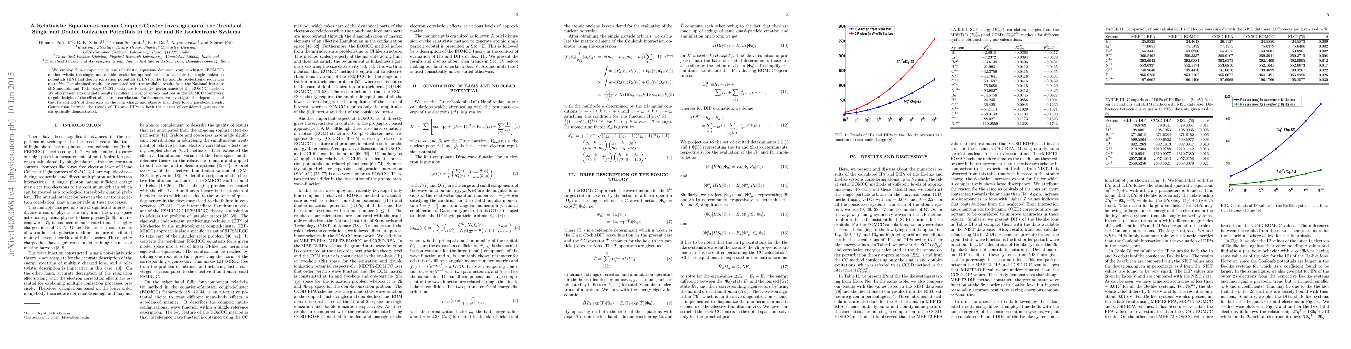 We employ four-component spinor relativistic equation-of-motion coupled-cluster (EOMCC) method within the single- and double- excitation approximation to calculate the single ionization potentials (IPs) and double ionization potentials (DIPs) of the He and Be isoelectronic sequences up to Ne. The obtained results are compared with the available results from the National Institute of Standards and Technology (NIST) database to test the performance of the EOMCC method. We also present intermediate results at different level of approximations in the EOMCC framework to gain insight of the effect of electron correlation. Furthermore, we investigate the dependence of the IPs and DIPs of these ions on the ionic charge and observe that these follow parabolic trends. Comparison between the trends of IPs and DIPs in both the classes of considered systems are categorically demonstrated.