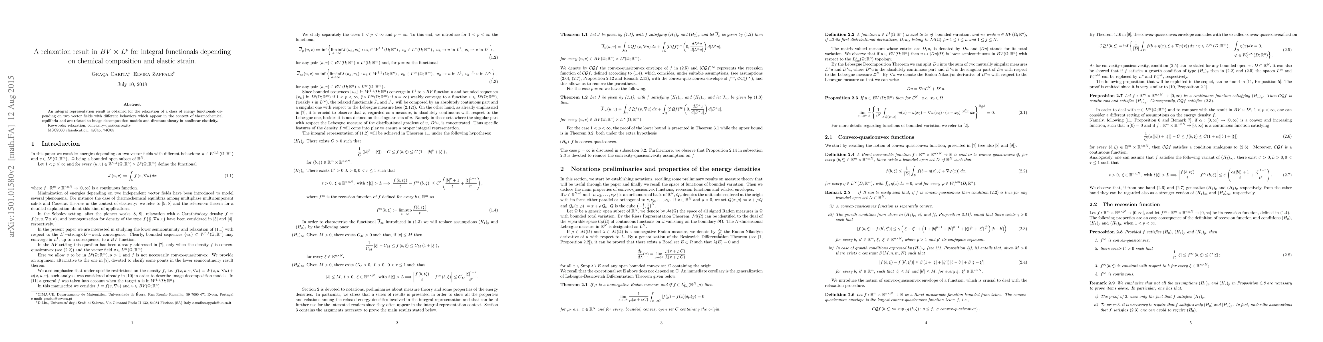 Summary: This paper presents an integral representation for the relaxation of energy functionals involving elastic strain and chemical composition, relevant to thermochemical equilibria and nonlinear elasticity models. The result provides insights into image decomposition and directors theory.