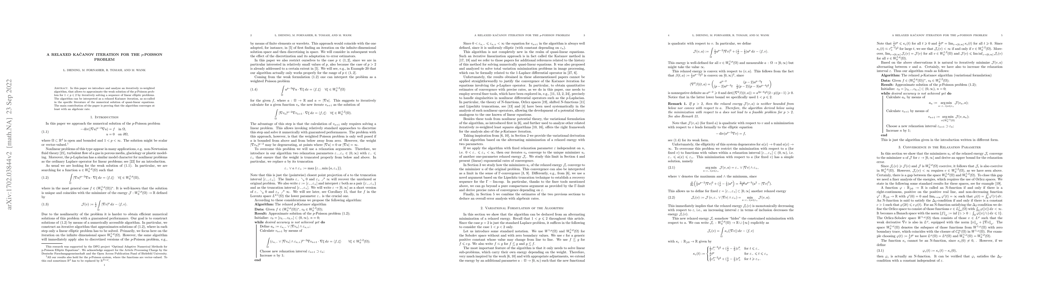 In this paper we introduce and analyze an iteratively re-weighted algorithm, that allows to approximate the weak solution of the $p$-Poisson problem for $1 < p \leq 2$ by iteratively solving a sequence of linear elliptic problems. The algorithm can be interpreted as a relaxed Ka{\v c}anov iteration, as so-called in the specific literature of the numerical solution of quasi-linear equations. The main contribution of the paper is proving that the algorithm converges at least with an algebraic rate.