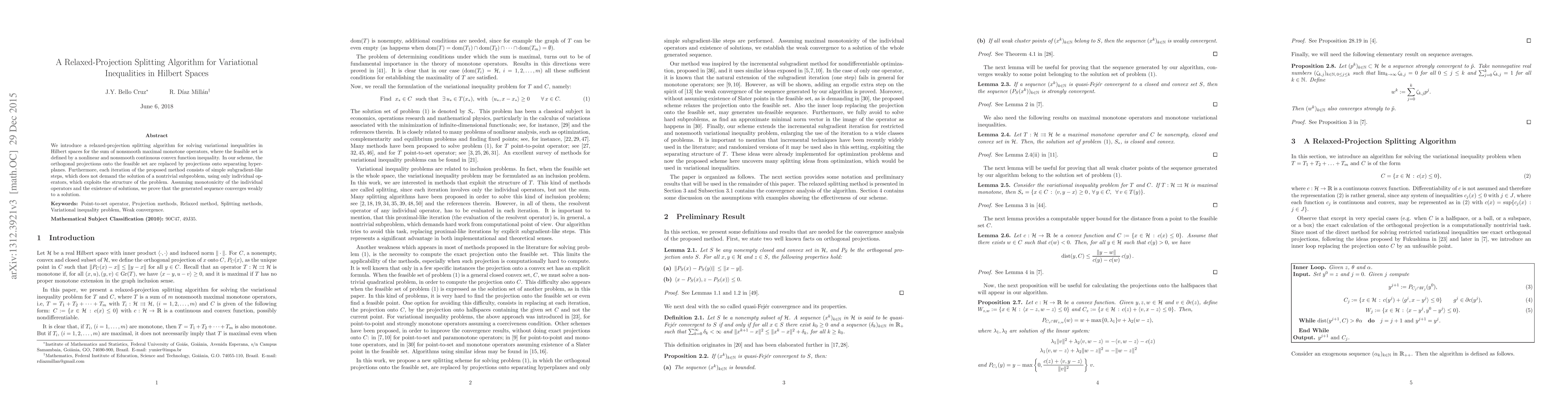 This paper proposes a relaxed-projection splitting algorithm for solving variational inequalities in Hilbert spaces involving nonsmooth maximal monotone operators. The method replaces orthogonal projections with projections onto separating hyperplanes, simplifying each iteration to subgradient-like steps, and proves weak convergence under monotonicity and solution existence.