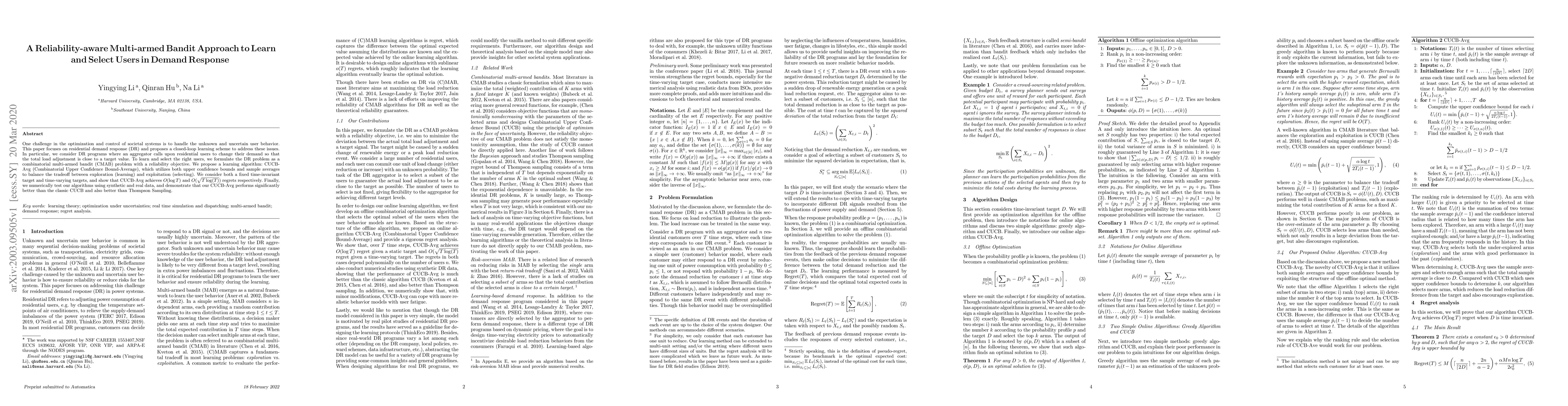 This research paper proposes a reliability-aware multi-armed bandit approach to learn and select users for demand response programs, achieving significant performance improvements over classic algorithms.