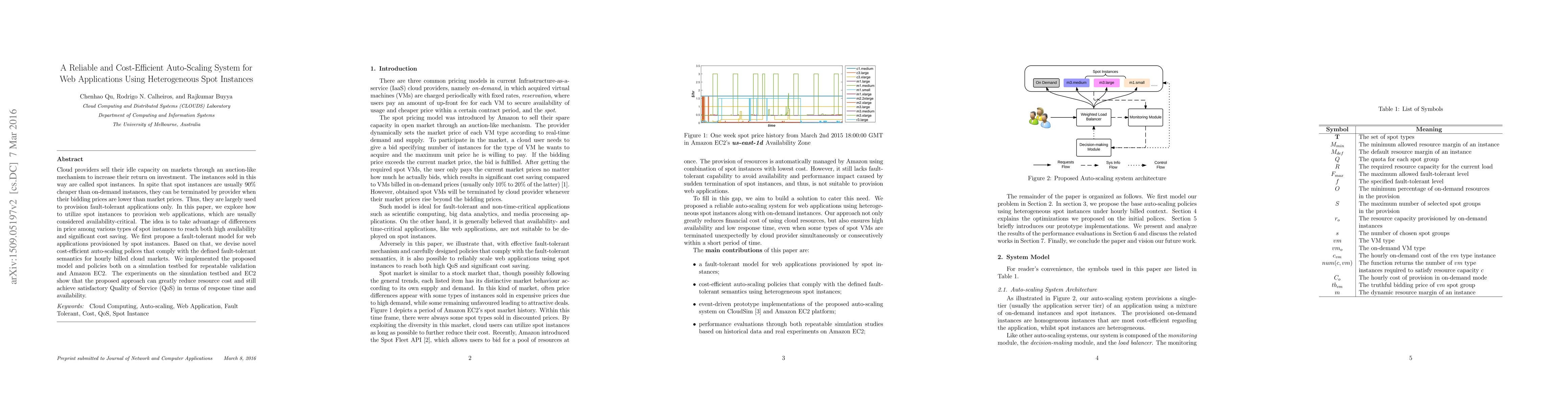 This paper proposes a cost-efficient auto-scaling system for web applications using heterogeneous spot instances, balancing high availability and significant cost savings. The model and auto-scaling policies were validated through simulations and real-world implementation on Amazon EC2, demonstrating reduced resource costs while maintaining QoS.