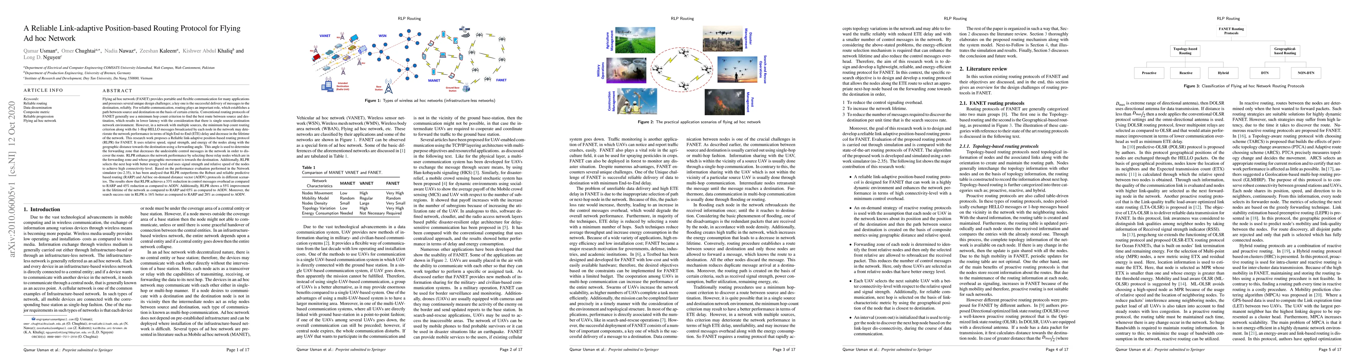 This paper proposes a Reliable link-adaptive position-based routing protocol (RLPR) for Flying ad hoc networks (FANET) to enhance message delivery reliability. RLPR selects relay nodes based on relative speed, signal strength, and energy, aiming to reduce control messages and improve network performance, outperforming existing protocols like RARP and AODV in simulations.