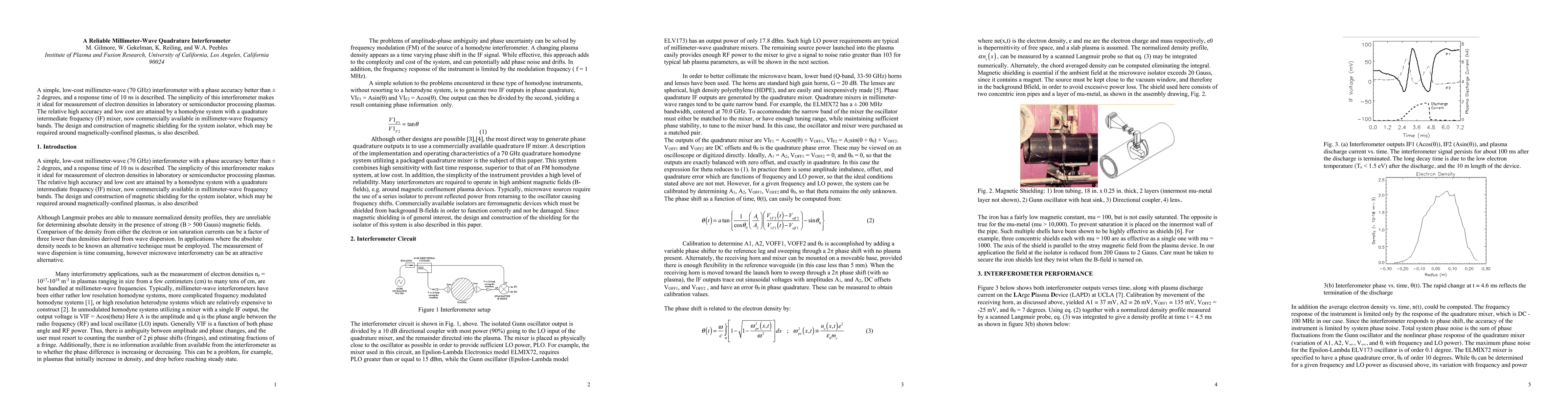 A simple, low-cost millimeter-wave (70 GHz) interferometer with a phase accuracy better than plus or minur 2 degrees, and a response time of 10 ns is described. The simplicity of this interferometer makes it ideal for measurement of electron densities in laboratory or semiconductor processing plasmas. The relative high accuracy and low cost are attained by a homodyne system with a quadrature intermediate frequency (IF) mixer, now commercially available in millimeter-wave frequency bands. The design and construction of magnetic shielding for the system isolator, which may be required around magnetically-confined plasmas, is also described.