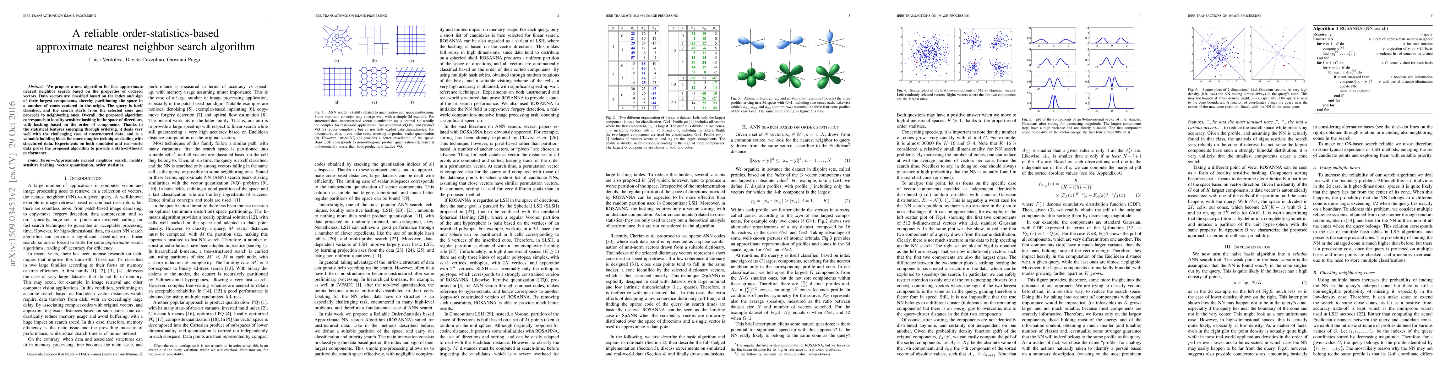 A new algorithm for fast approximate nearest neighbor search is proposed using ordered vectors, achieving state-of-the-art performance on both simulated and real-world data.