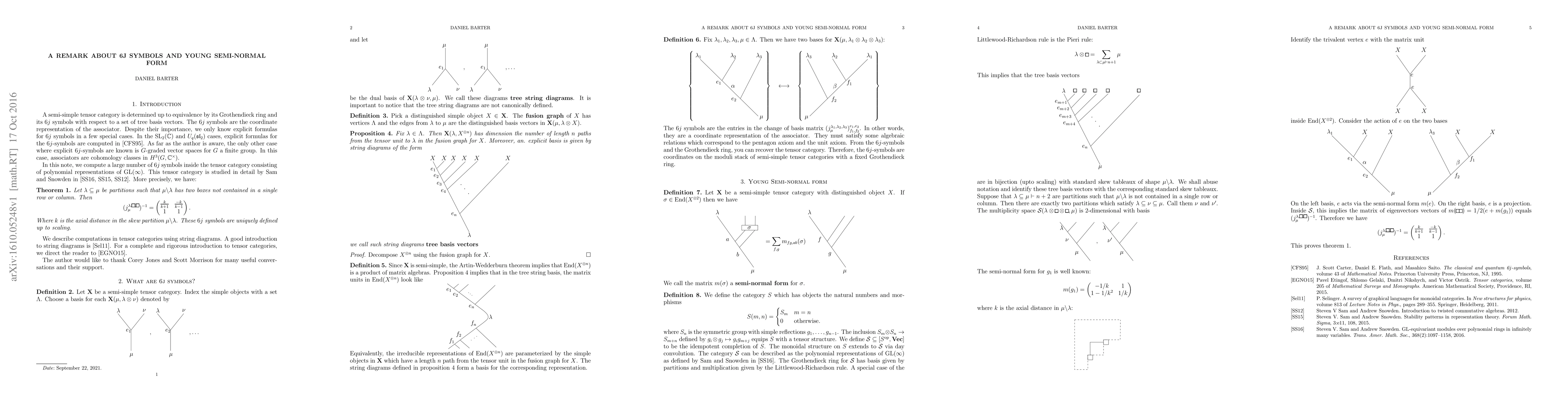 We compute some 6j symbols in the category of polynomial representations of $GL(\infty)$.