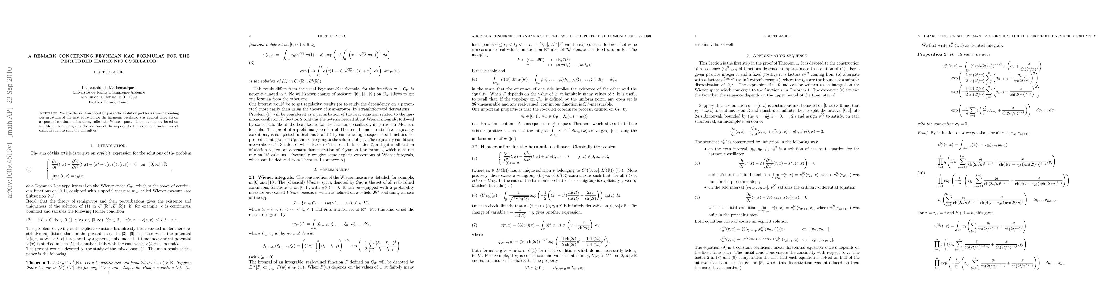 Summary: This paper provides explicit integral solutions for time-dependent perturbations of the heat equation in the context of a perturbed harmonic oscillator, utilizing Feynman Kac formulas on Wiener space.