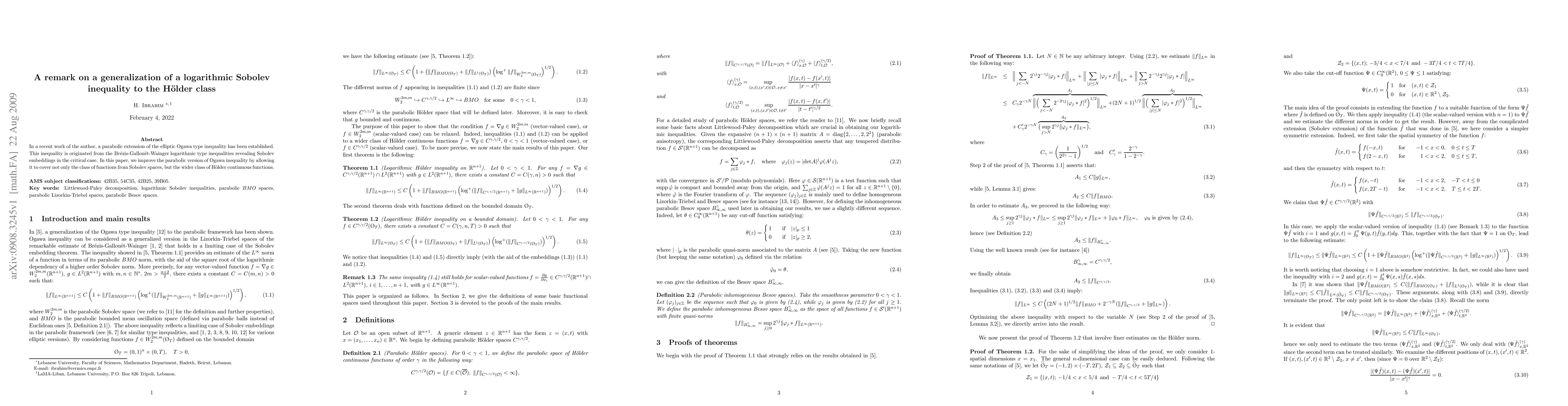 This paper extends a parabolic version of the Ogawa inequality to cover Holder continuous functions, improving upon previous results limited to Sobolev spaces. The generalization leverages insights from Brezis-Gallouet-Wainger logarithmic inequalities.