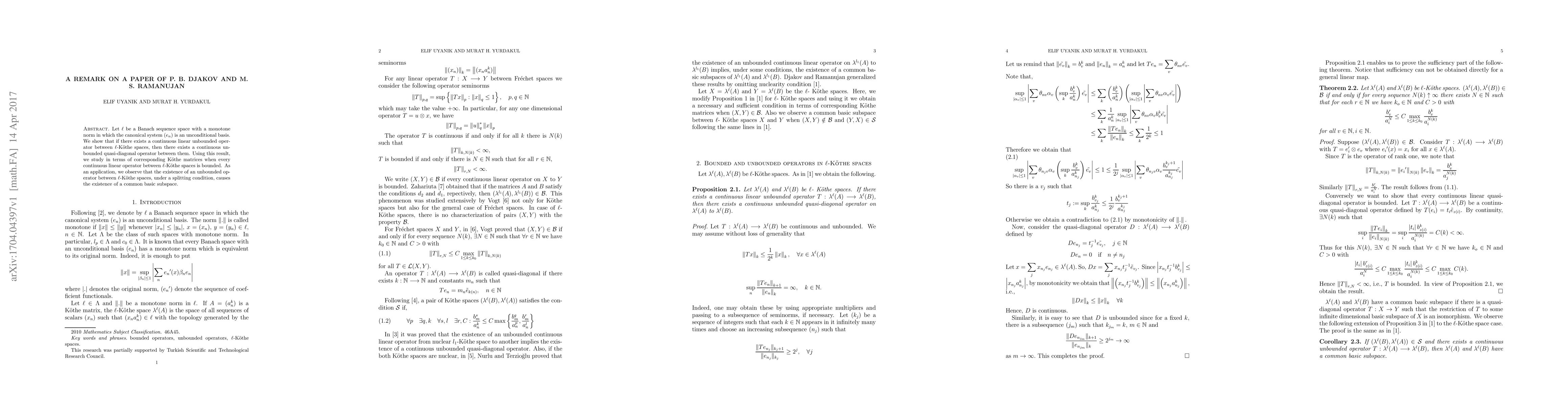 Let l be a Banach sequence space with a monotone norm in which the canonical system (e_{n}) is an unconditional basis. We show that if there exists a continuous linear unbounded operator between l-K\"{o}the spaces, then there exists a continuous unbounded quasi-diagonal operator between them. Using this result, we study in terms of corresponding K\"{o}the matrices when every continuous linear operator between l-K\"{o}the spaces is bounded. As an application, we observe that the existence of an unbounded operator between l-K\"{o}the spaces, under a splitting condition, causes the existence of a common basic subspace.