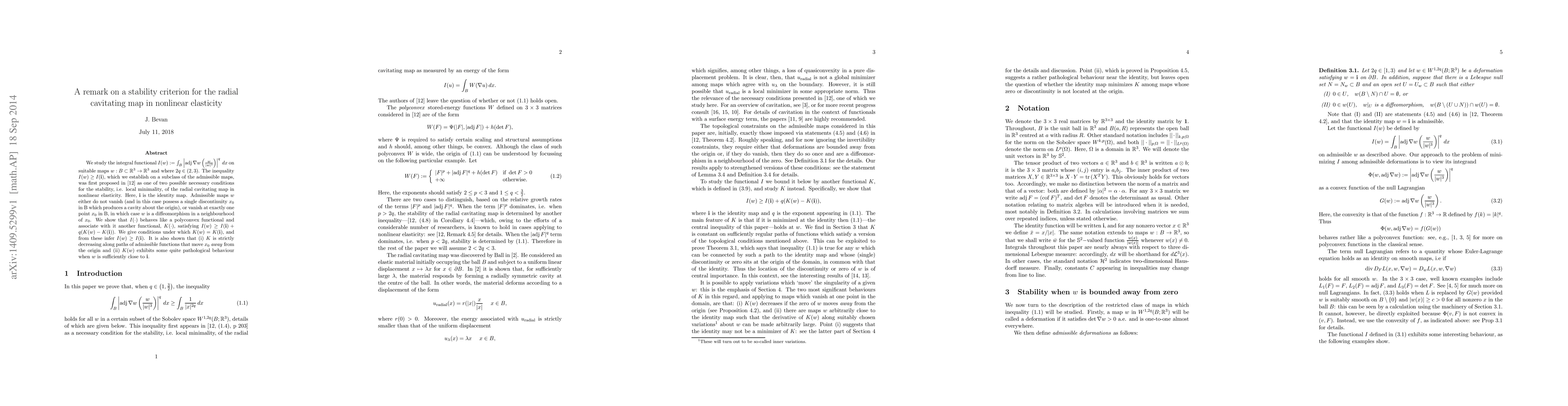 An integral functional $I(w) = \int_{B} \left|\adj \nabla w \frac{w}{|w|^{3}}\right|^{q}$ defined on suitable maps $w$ is studied. The inequality $I(w) \geq I(\mathbf{id})$, where $\mathbf{id}$ is the identity map, is established on a subclass of the admissible maps, and as such confirms in these cases a criterion for the local minimality of the radial cavitating map in 3 dimensional nonlinear elasticity. The criterion was first identified by J. Sivaloganathan and S. Spector in, "Necessary conditions for a minimum at a radial cavitating singularity in nonlinear elasticity. Ann. I. H. Poincare 25 (2008) no.1, 201-213".