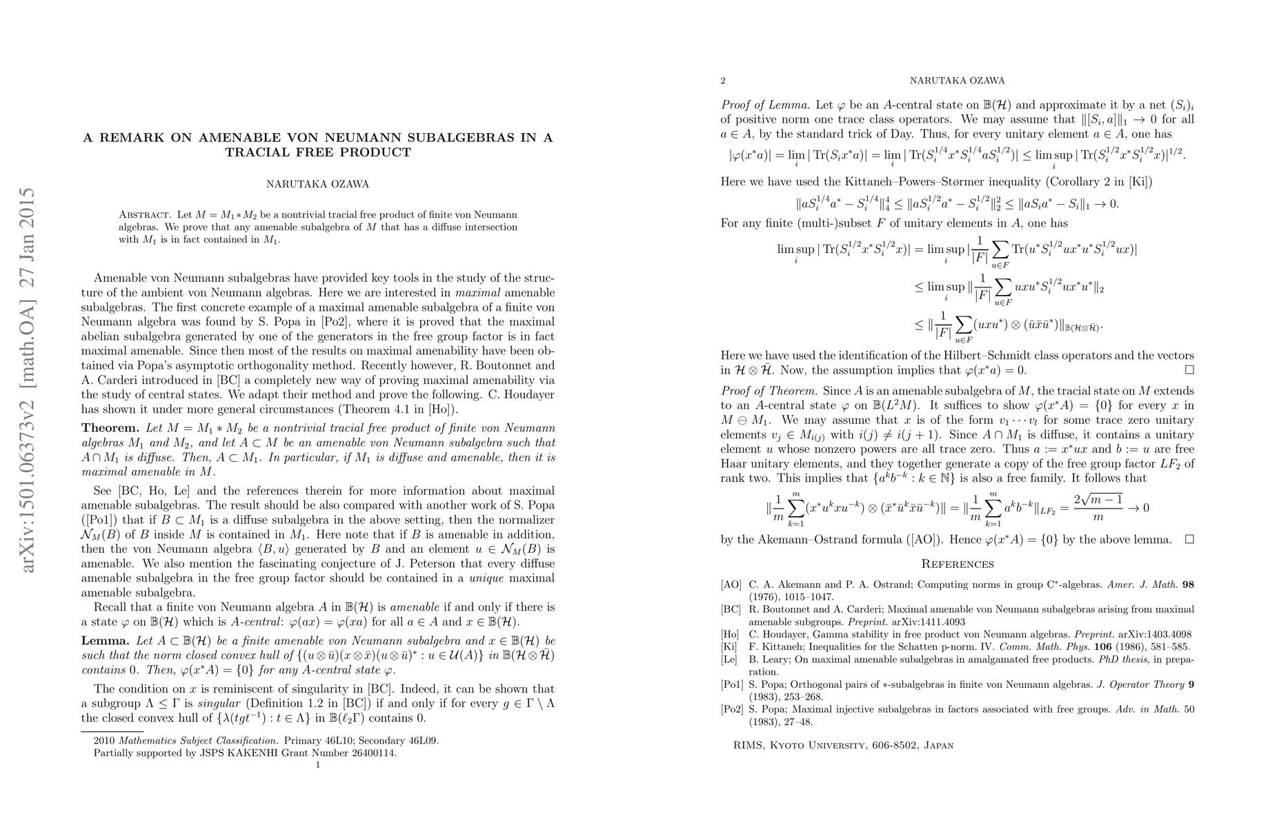 A research paper proves that any amenable subalgebra of a tracial free product with a diffuse intersection with one part is contained within that part.