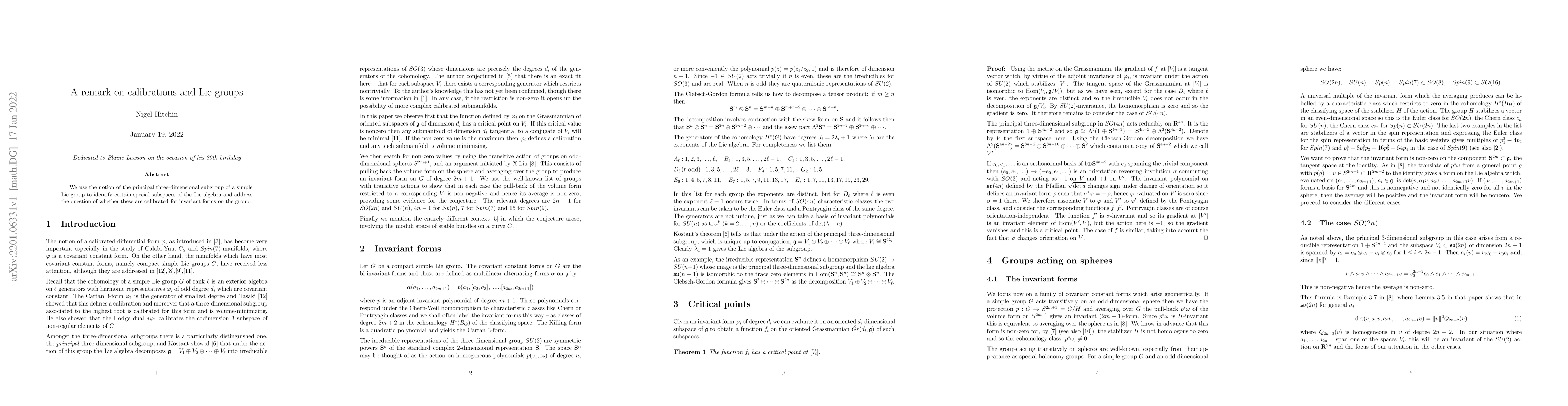 We use the notion of the principal three-dimensional subgroup of a simple Lie group to identify certain special subspaces of the Lie algebra and address the question of whether these are calibrated for invariant forms on the group.