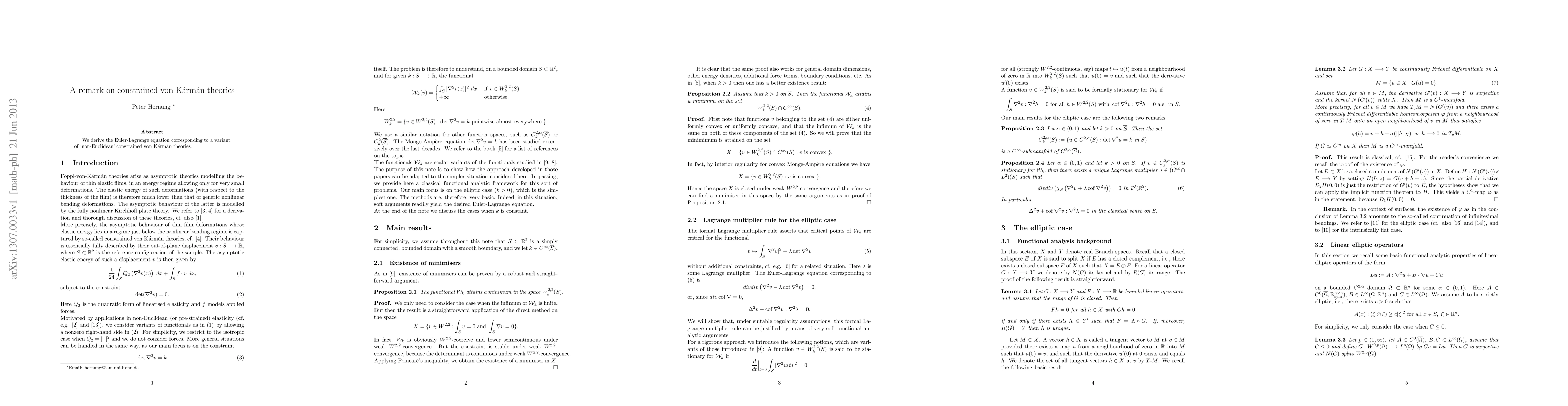 Summary: This paper derives the Euler-Lagrange equation for a modified non-Euclidean constrained von Karman theory, providing a framework for analyzing such constrained systems. The focus is on the theoretical underpinnings of these advanced mechanical models.