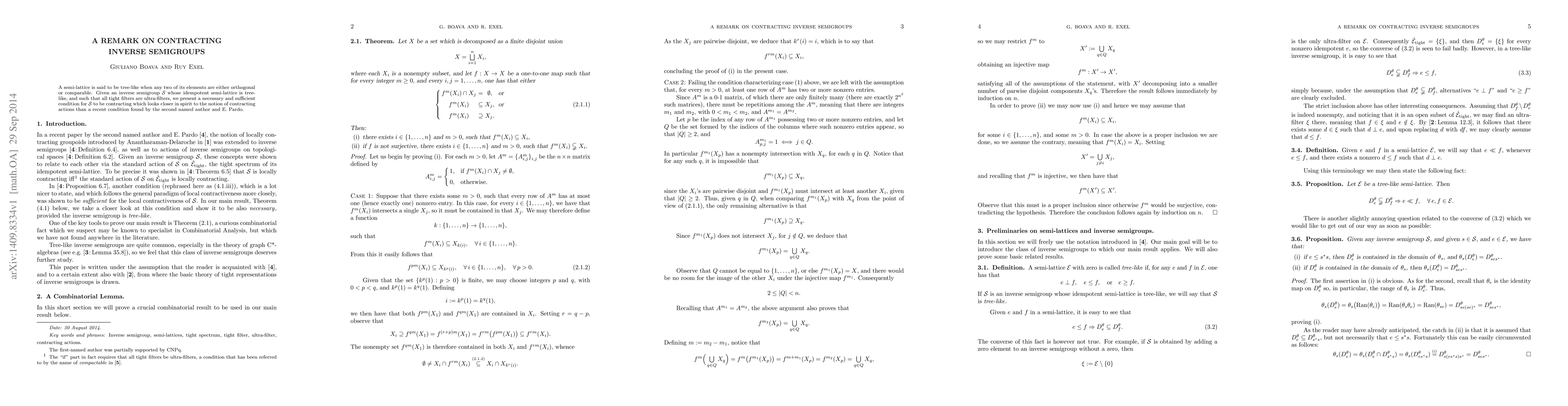 A semi-lattice is said to be tree-like when any two of its elements are either orthogonal or comparable. Given an inverse semigroup S whose idempotent semi-lattice is tree-like, and such that all tight filters are ultra-filters, we present a necessary and sufficient condition for S to be contracting which looks closer in spirit to the notion of contracting actions than a recent condition found by the second named author and E. Pardo.