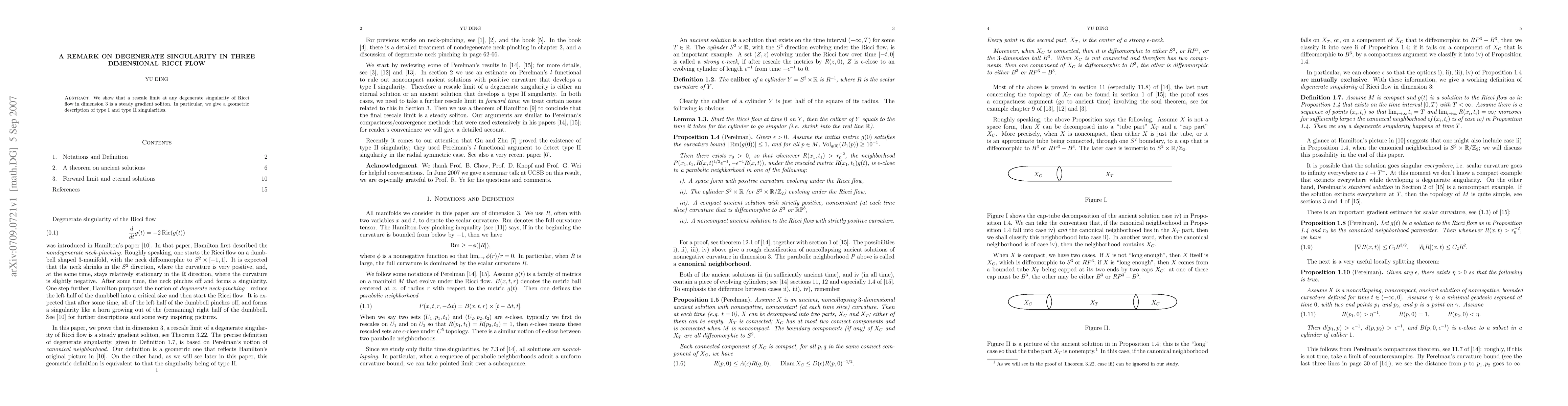 We show that a rescale limit at any degenerate singularity of Ricci flow in dimension 3 is a steady gradient soliton. In particular, we give a geometric description of type I and type II singularities.