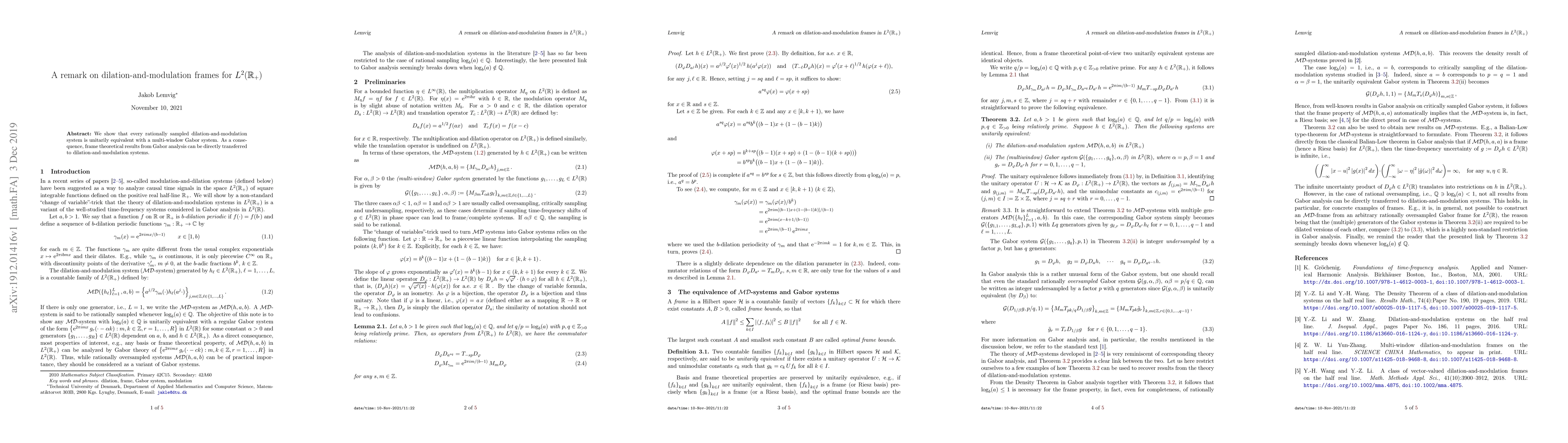 Summary: This paper demonstrates that any rationally sampled dilation-and-modulation system is unitarily equivalent to a multi-window Gabor system, allowing the transfer of frame theoretical results from Gabor analysis to dilation-and-modulation systems.