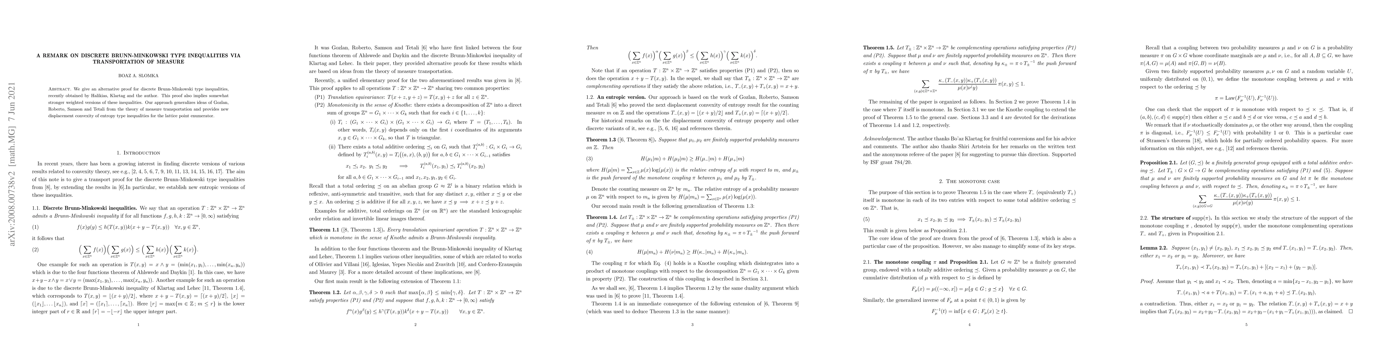 This paper presents an alternative proof for discrete Brunn-Minkowski inequalities, utilizing measure transportation theory, and derives stronger weighted versions. It also introduces new entropy-type displacement convexity inequalities for the lattice point enumerator.