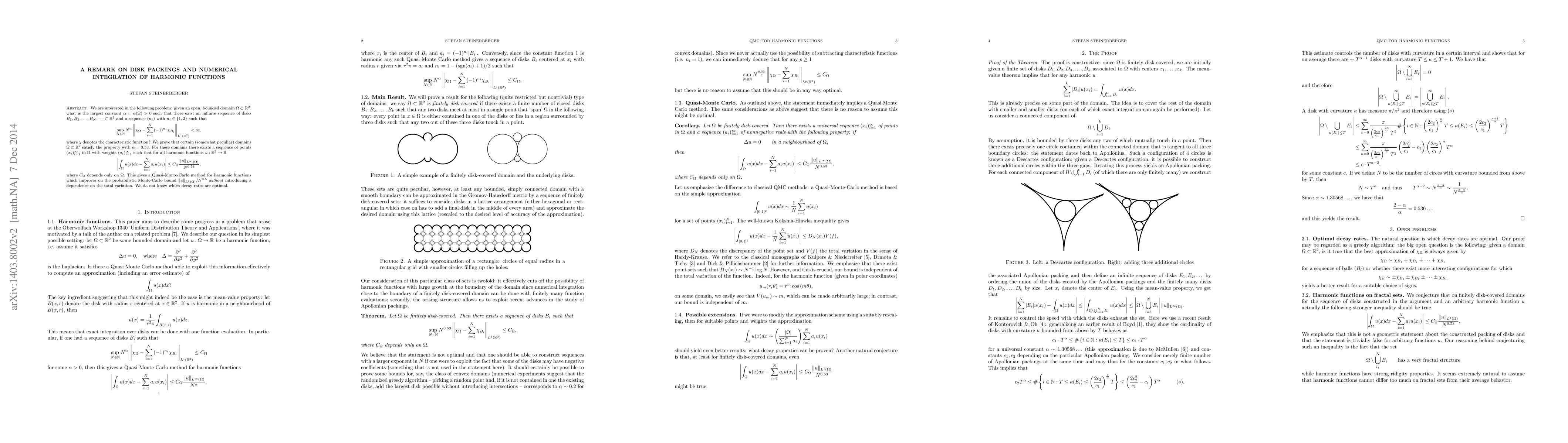 We are interested in the following problem: given an open, bounded domain $\Omega \subset \mathbb{R}^2$, what is the largest constant $\alpha = \alpha(\Omega) > 0$ such that there exist an infinite sequence of disks $B_1, B_2, \dots, B_N, \dots \subset \mathbb{R}^2$ and a sequence $(n_i)$ with $n_i \in \left\{1,2\right\}$ such that $$ \sup_{N \in \mathbb{N}}{N^{\alpha}\left\| \chi_{\Omega} - \sum_{i=1}^{N}{(-1)^{n_i}\chi_{B_i}}\right\|_{L^1(\mathbb{R}^2)}} < \infty,$$ where $\chi$ denotes the characteristic function? We prove that certain (somewhat peculiar) domains $\Omega \subset \mathbb{R}^2$ satisfy the property with $\alpha = 0.53$. For these domains there exists a sequence of points $(x_i)_{i=1}^{\infty}$ in $\Omega$ with weights $(a_i)_{i=1}^{\infty}$ such that for all harmonic functions $u:\mathbb{R}^2 \rightarrow \mathbb{R}$ $$ \left|\int_{\Omega}{u(x)dx} - \sum_{i=1}^{N}{a_i u(x_i)}\right| \leq C_{\Omega}\frac{\|u\|_{L^{\infty}(\Omega)}}{N^{0.53}},$$ where $C_{\Omega}$ depends only on $\Omega$. This gives a Quasi-Monte-Carlo method for harmonic functions which improves on the probabilistic Monte-Carlo bound $\|u\|_{L^{2}(\Omega)}/N^{0.5}$ \textit{without} introducing a dependence on the total variation. We do not know which decay rates are optimal.