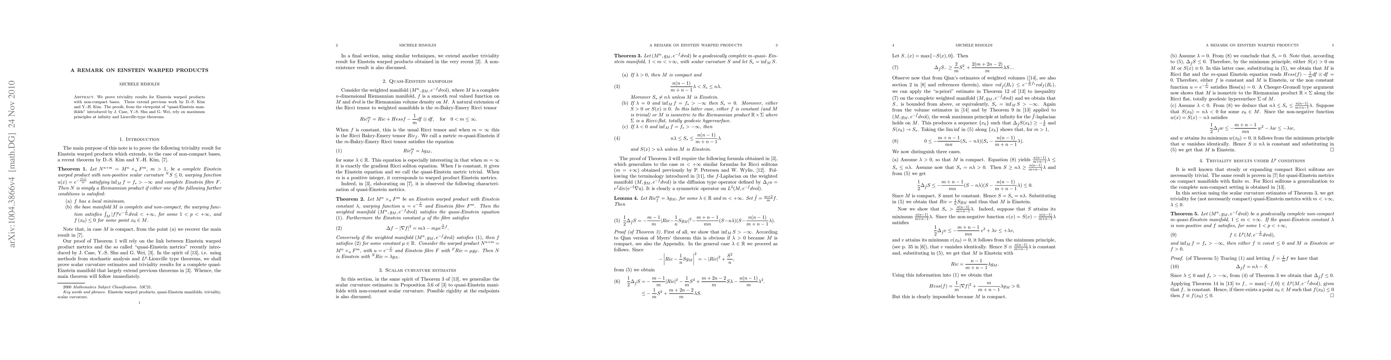We prove triviality results for Einstein warped products with non-compact bases. These extend previous work by D.-S. Kim and Y.-H. Kim. The proof, from the viewpoint of "quasi-Einstein manifolds" introduced by J. Case, Y.-S. Shu and G. Wei, rely on maximum principles at infinity and Liouville-type theorems.