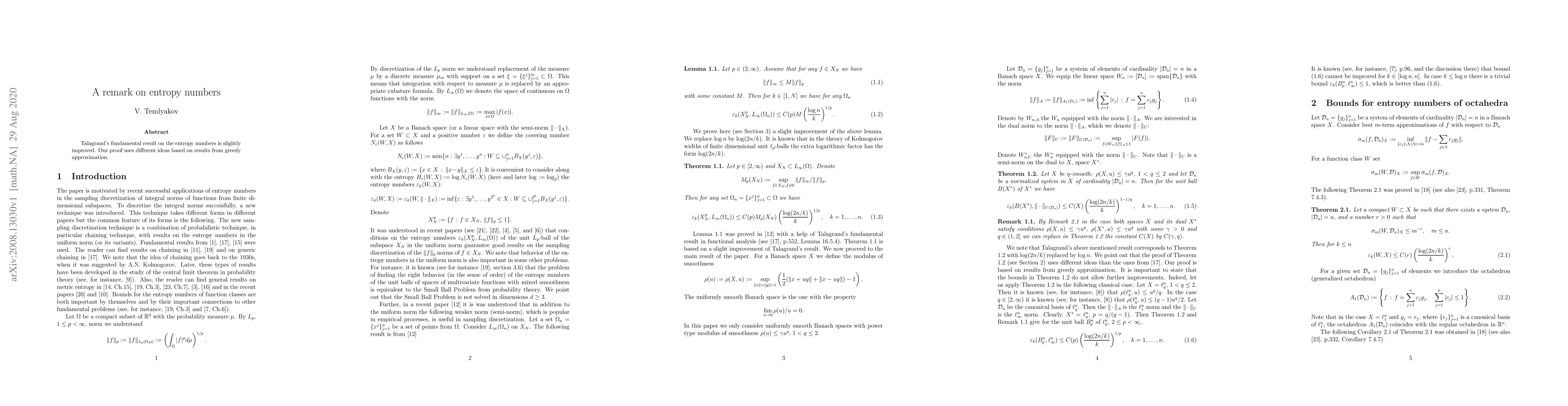 Talagrand's fundamental result on the entropy numbers is slightly improved. Our proof uses different ideas based on results from greedy approximation.