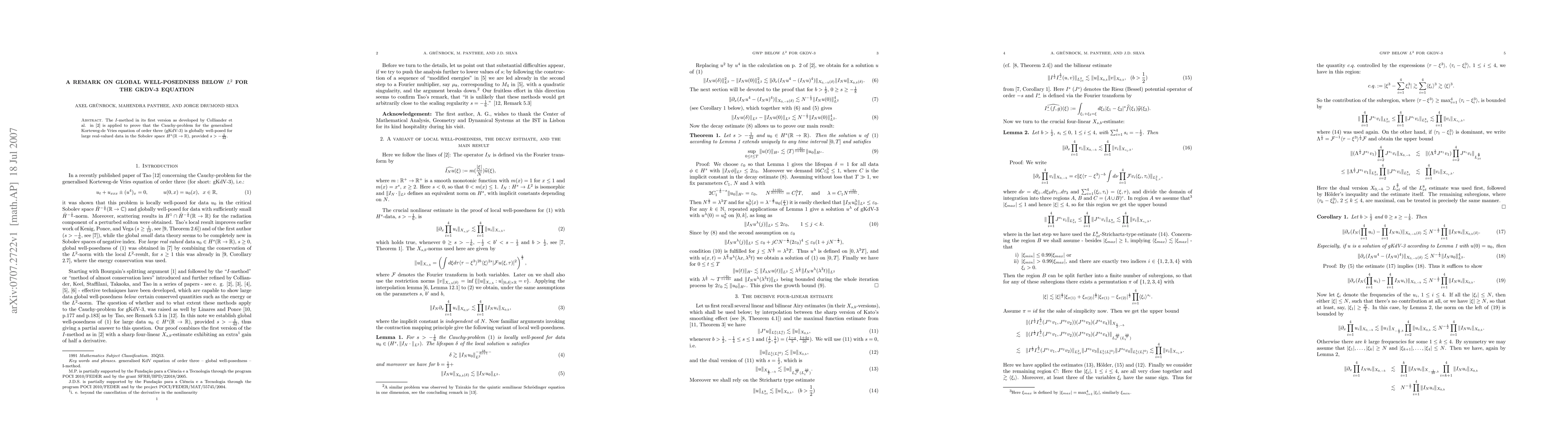 The I-method in its first version as developed by Colliander et al. is applied to prove that the Cauchy-problem for the generalised Korteweg-de Vries equation of order three (gKdV-3) is globally well-posed for large real-valued data in the Sobolev space H^s, provided s>-1/42.