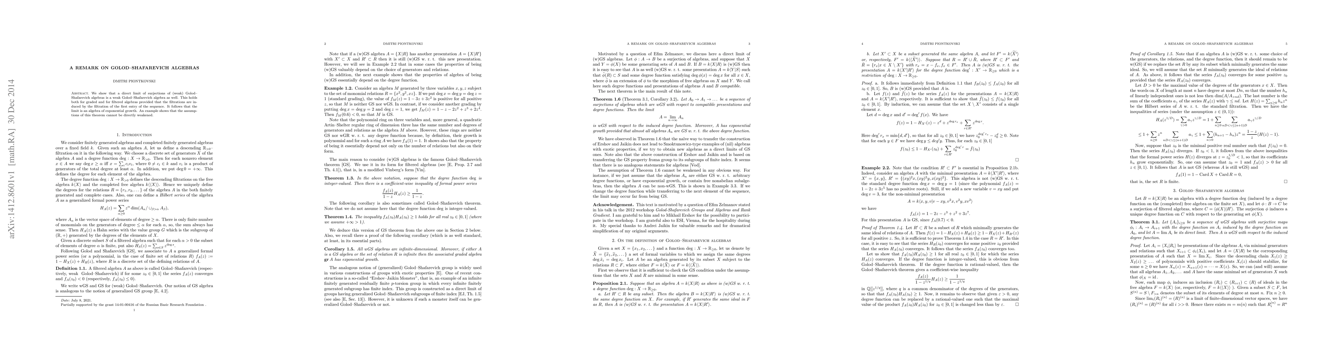 This paper demonstrates that a direct limit of surjections between (weak) Golod-Shafarevich algebras remains a weak Golod-Shafarevich algebra, maintaining exponential growth, with specific conditions on filtrations. An example further illustrates the necessity of these assumptions.